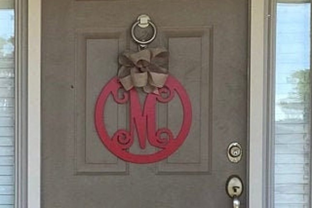 Welcome your guests with this initial door wreath. Our initials are thicker than our competitors so they POP on your front door or patio! You can request a block initial, magnolia font, or our vine script font. We offer a variety of colors and hanging options. Our Monogram Porch Sign makes a great gift when you don9;t know what to gift!