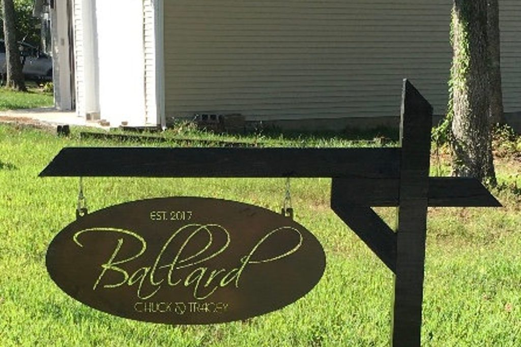 Rustic, personalized metal sign . Measures 36" x 16.5". Auburn acid wash with clear coat or Powder coated in black texture . Makes a very attractive entrance sign.Incl with the price is customizing with your name.Our finish is a baked on powder coat for a very long lasting durable finish.