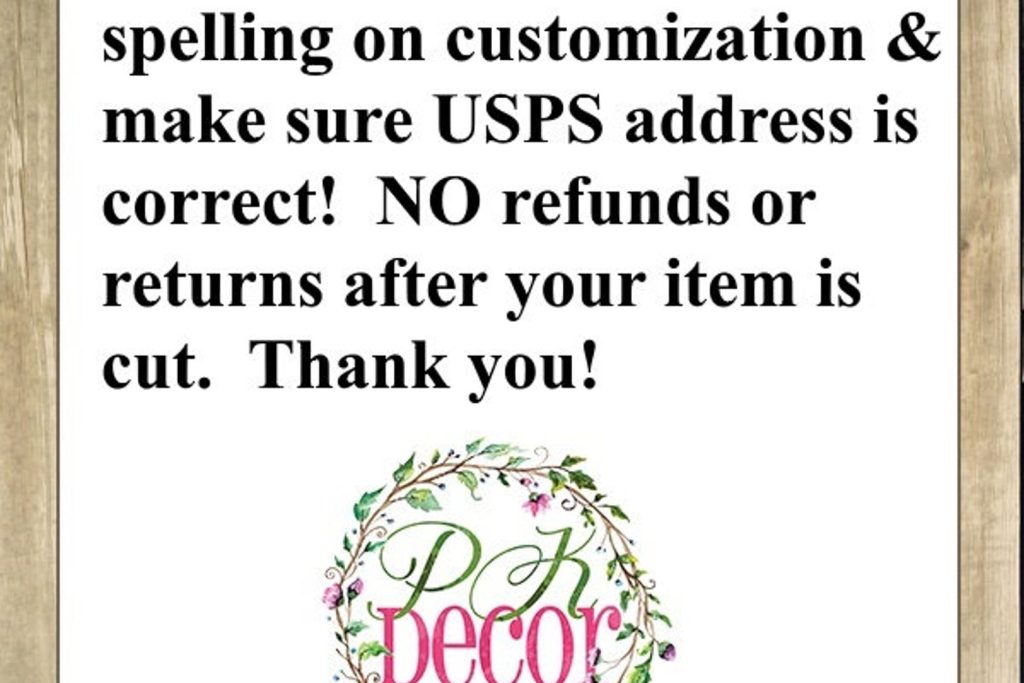 PLEASE STOP and read below about the material you are purchasing and order details!!! (no reimbursements/returns after your item is cut as they are custom) WE START ON YOUR ORDER AS SOON AS YOU PAY! MAKE SURE SPELLING AND USPS ADDRESS ARE CORRECT! We are not responsible for your typos/mistakes! If your order returns to us due to incorrect address you will receive an invoice for reshipment. We have a no return/refund policy.