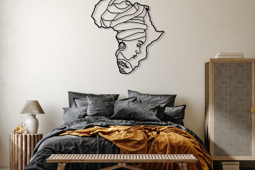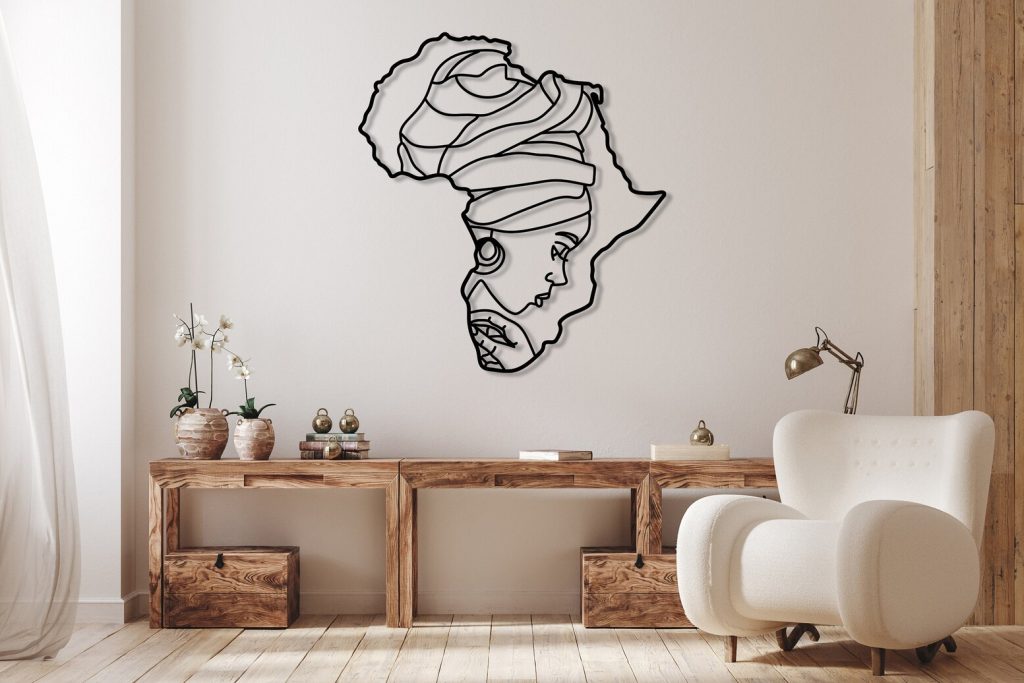 African Woman Metal Wall Map Art, African American Bedroom Wall Decor, African Style Woman Figure Art, African Queen Decor, Housewarming Gift