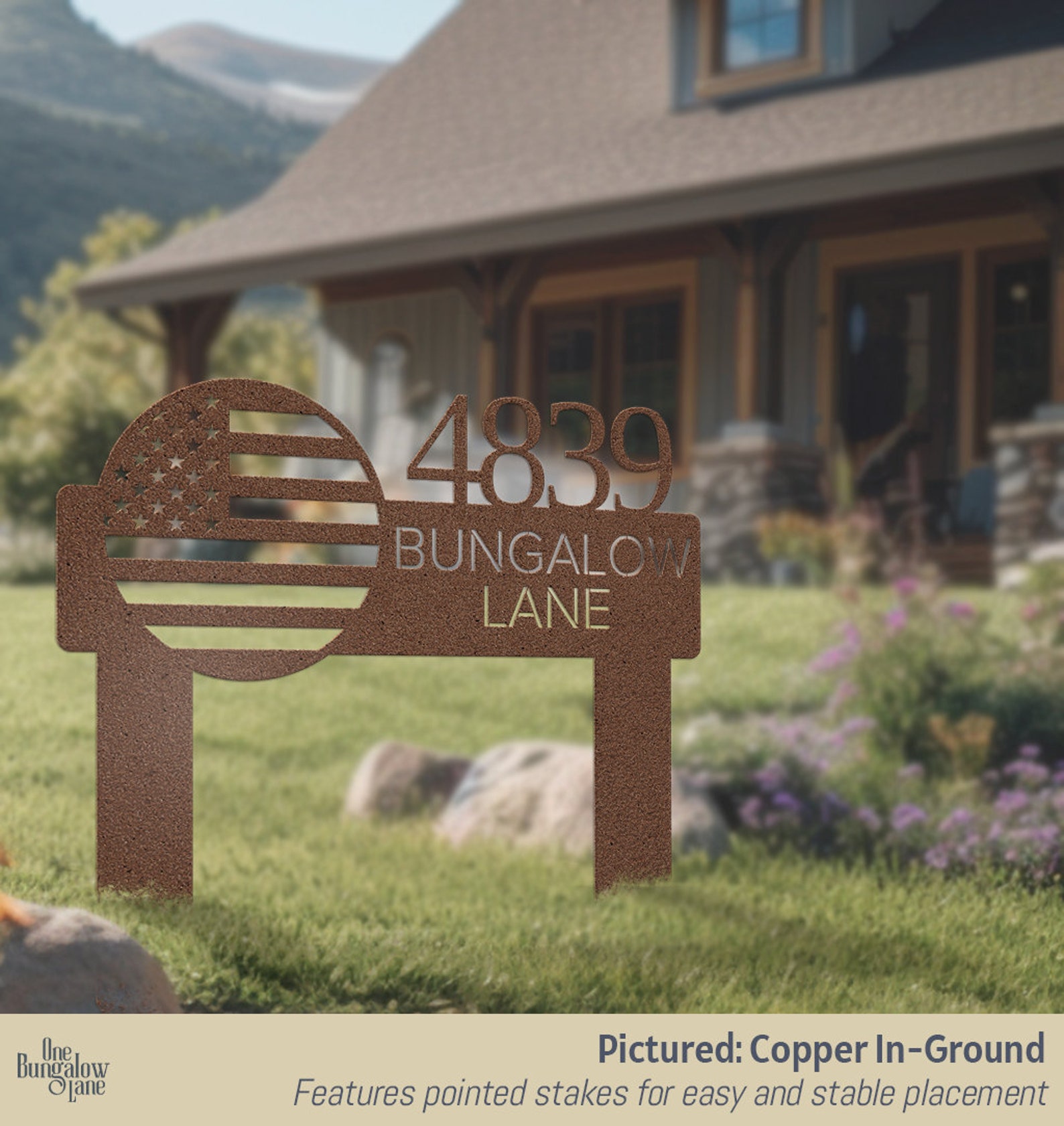 Elevate your outdoor space with our exquisite steel lawn address signs, seamlessly blending nature-inspired designs with functional elegance. At One Bungalow Lane, we take pride in our craftsmanship and personalized charm. Whether displaying your address, family name, or a combination of both, our signs infuse a unique touch into your abode.