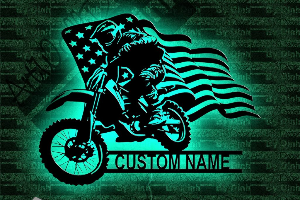 American Motocross Metal Sign, LED Light
