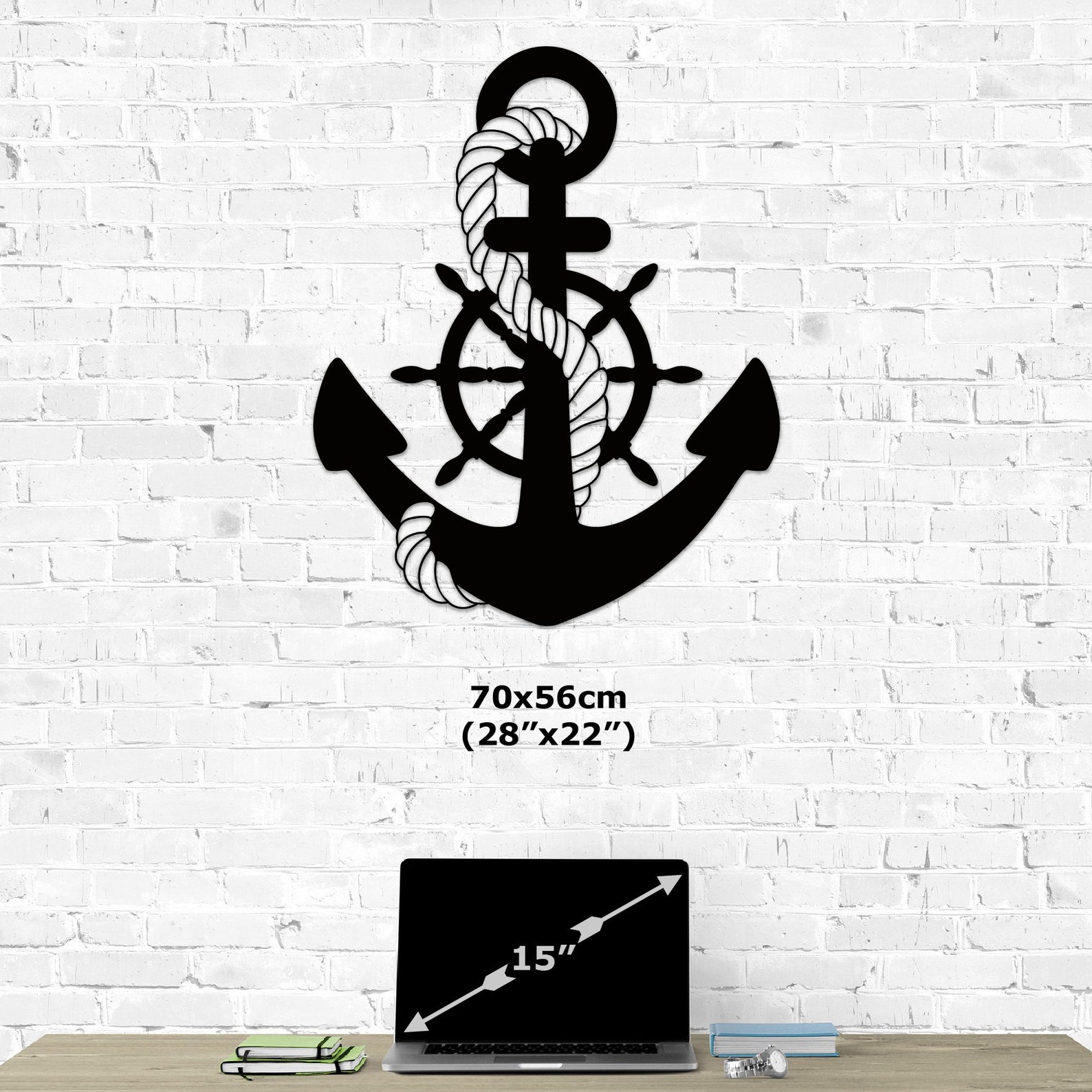 Add a touch of nautical charm to your home or office with this beautifully crafted Anchor Metal Wall Art. Made from 0.08" thick iron sheet, this laser-cut wall decor features an intricate design of an anchor, rr, and rope, perfect for those who love the ocean and ships. The black color and Art Deco style make it versatile for any room in your home, whether it be your office, kitchen, bedroom, living room, or dining room. This wall decor is a unique addition to your home. Anchor Metal Wall Art is the perfect piece to showcase your love for the sea.
