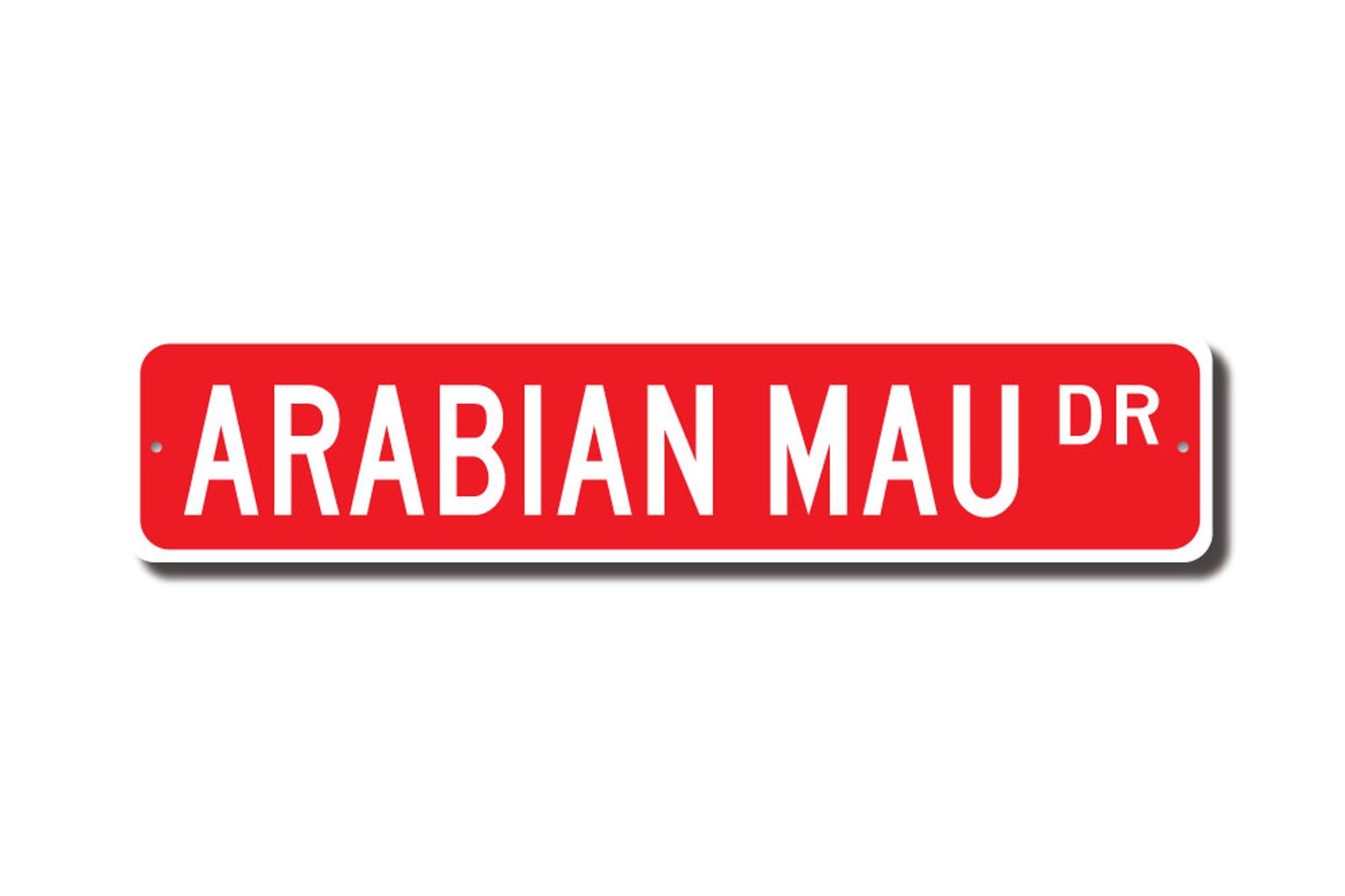 Arabian Mau lovers check out this awesome street sign! This will make the perfect piece for any Arabian Mau lover. These signs are made of premium aluminum which will stand the test of time. This will be a great decor sign for any room, den, barn or office! Get this sign for your favorite friend that loves an Arabian Mau!