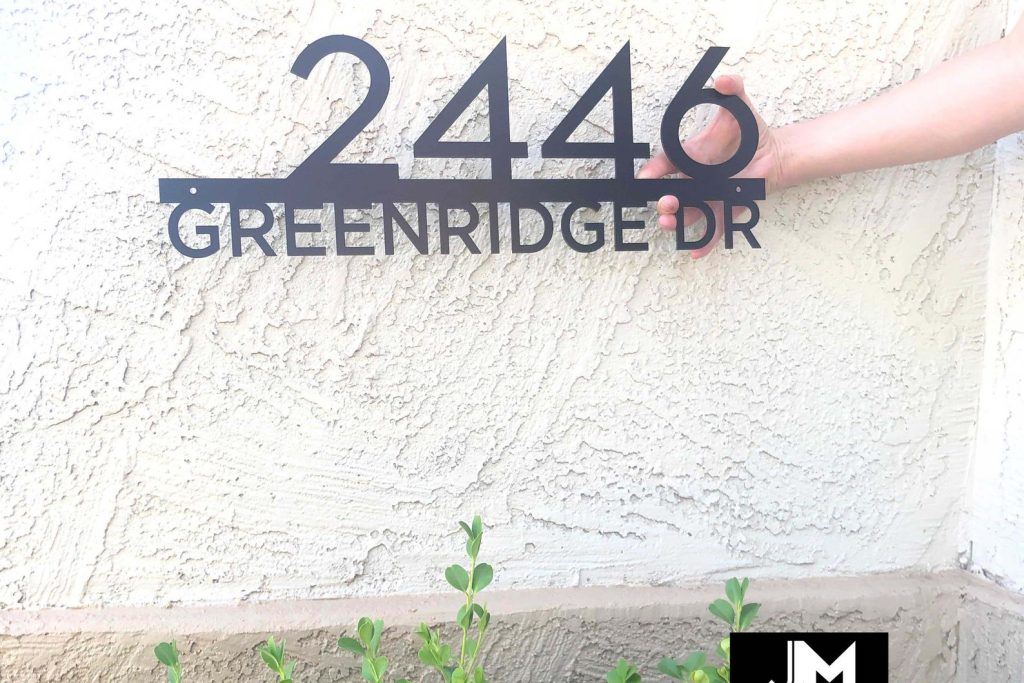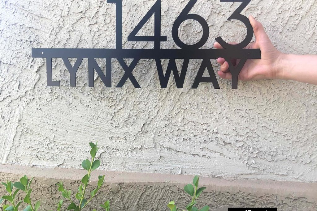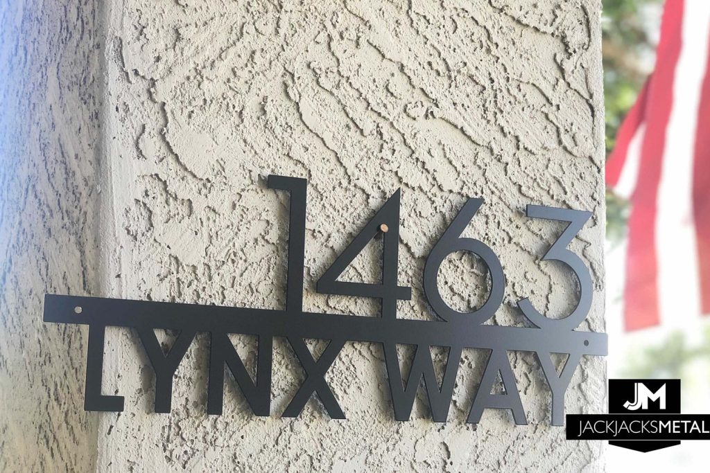 7 inch tall x 20 inch wide Modern Style Metal Address Bar made from iron and offered in raw metal or powder coated steel so they will be protected from outside harsh weather conditions and look great on a house of any color