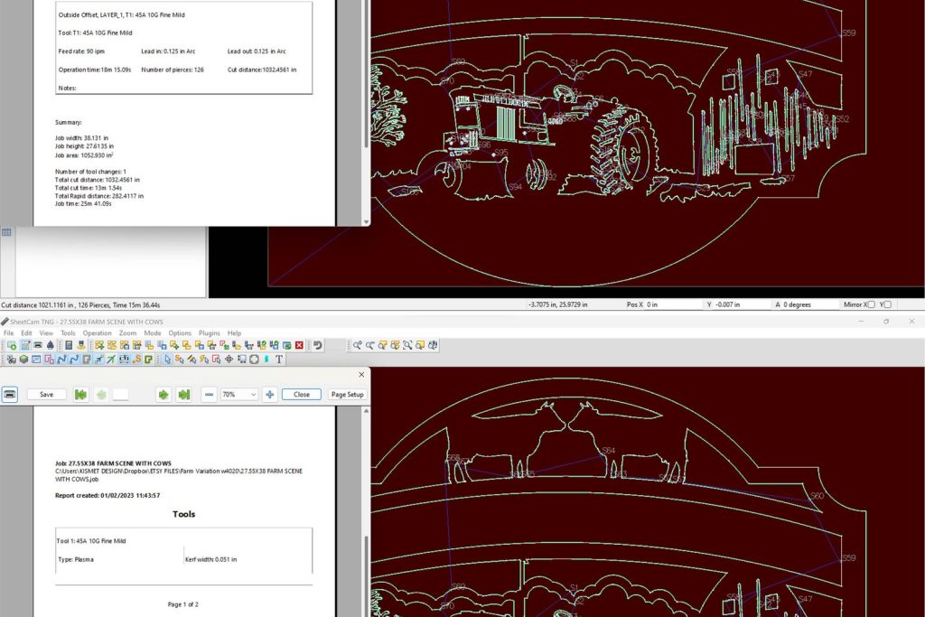 Our digital files are meticulously designed with a .051" kerf compensation, tailored for the fine cut tolerances of the Hypertherm plasma cutter, ensuring clean, precise cuts and enhancing the beauty and detail of your projects. Kerf refers to the material removed during the cutting process. By precisely accounting for this in our designs, we guarantee that details are preserved, and assemblies fit seamlessly, particularly on thinner metals and at larger sizes. The larger the design, the more effectively it compensates for kerf, making your projects come together perfectly.