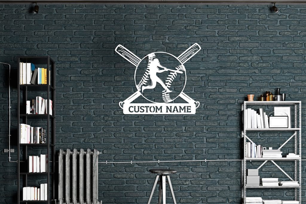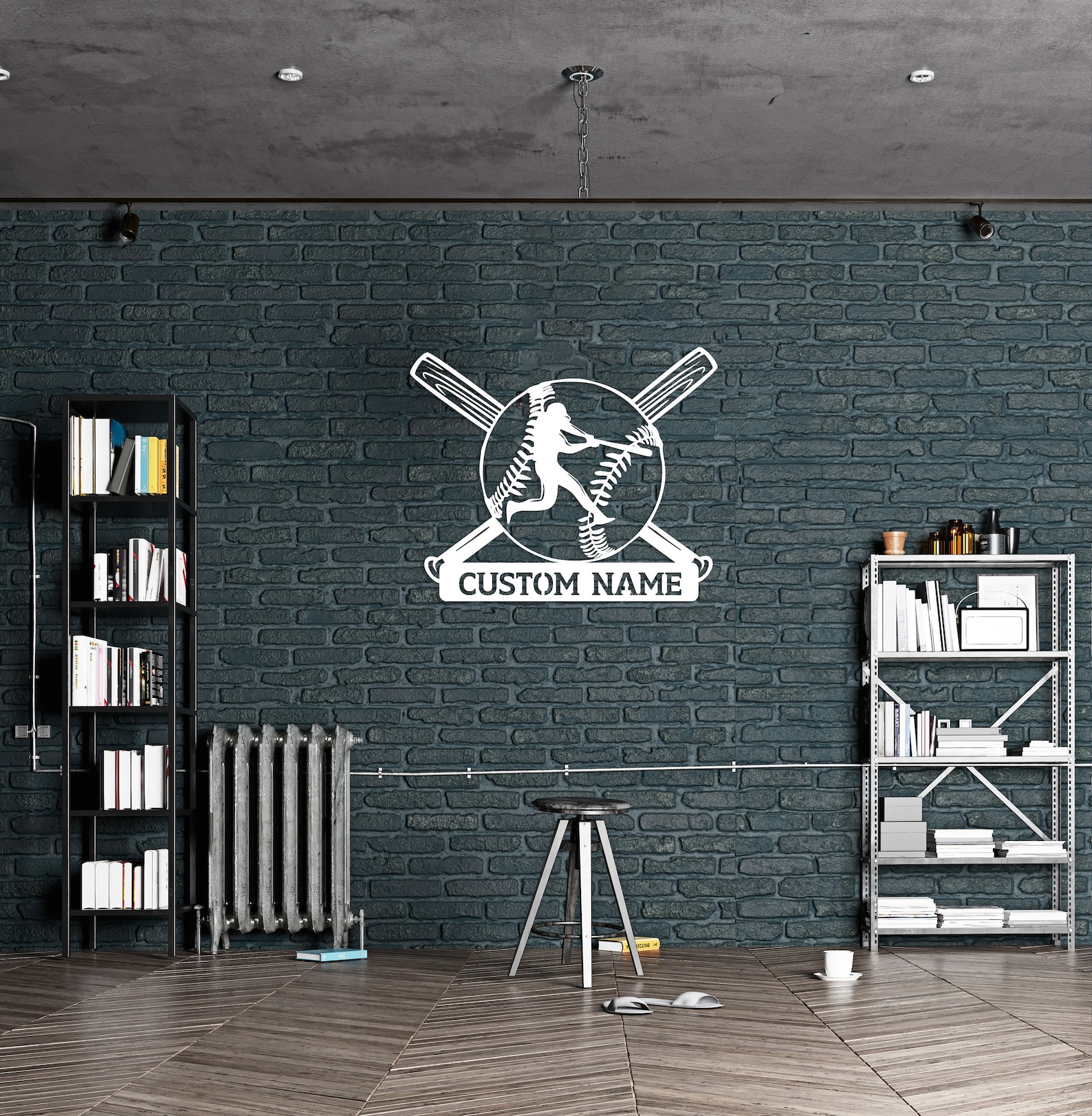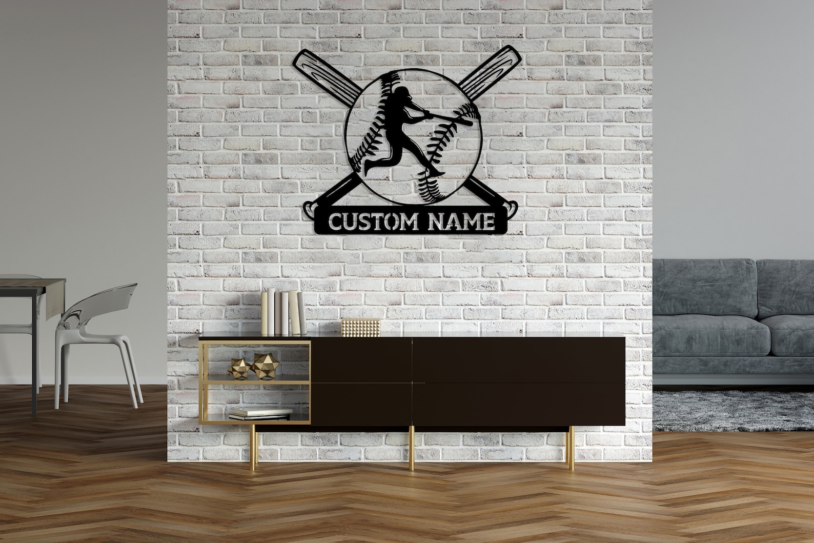 Metal Custom Name Baseball Wall Sign, Personalized Baseball Bat and Ball Wall Decor, Gift for Baseball Players, Custom Team or Name Sign, Art
