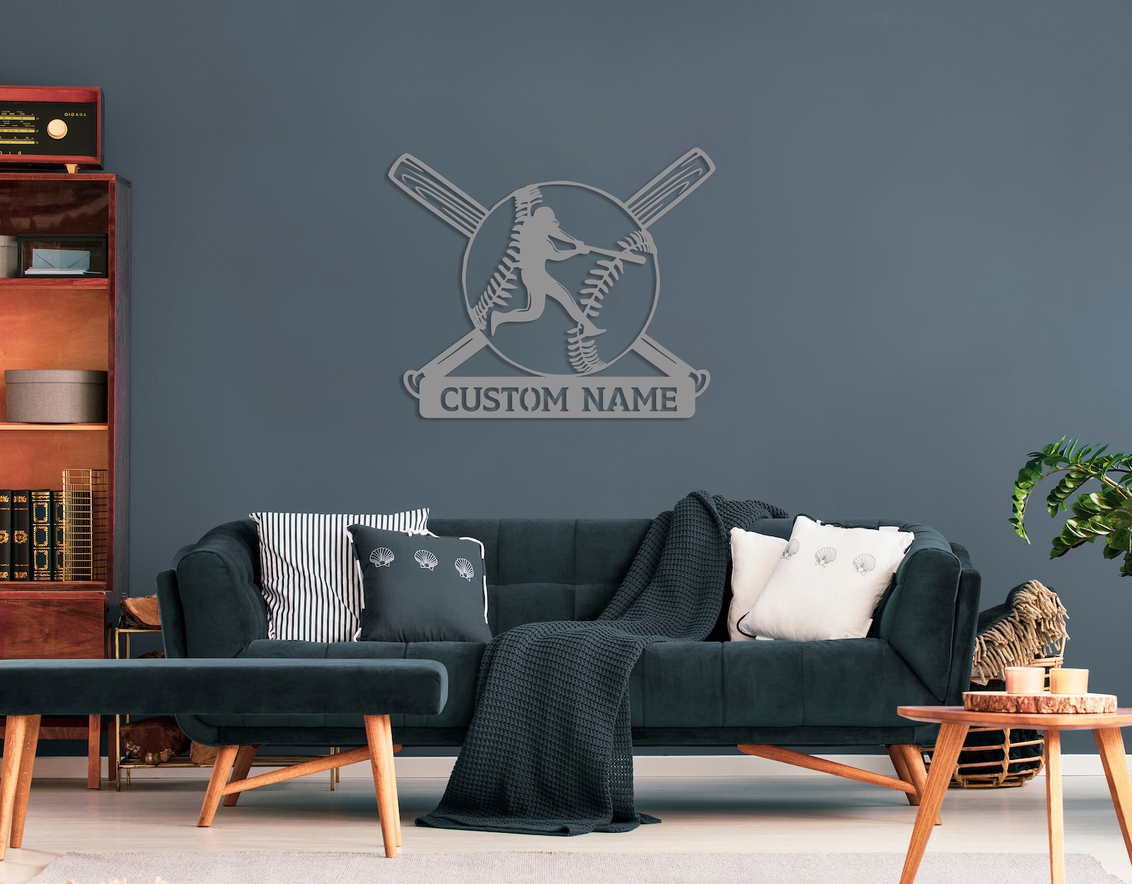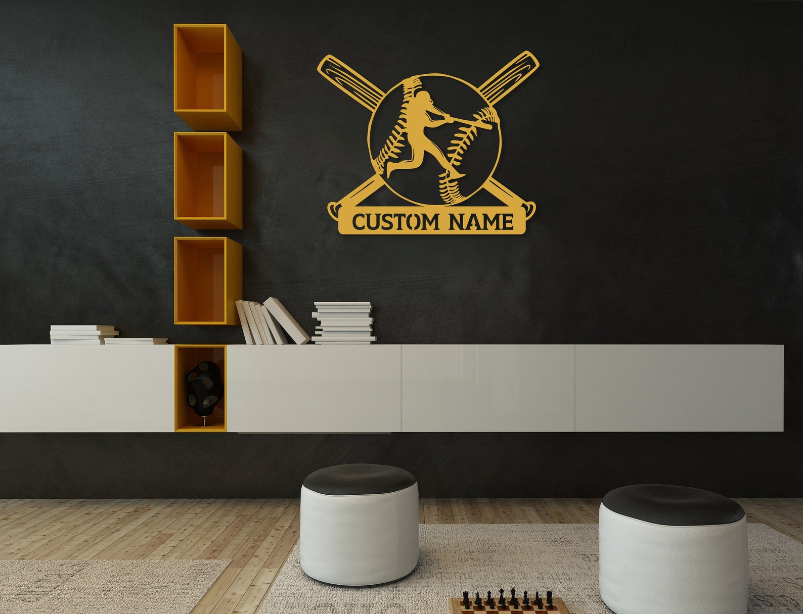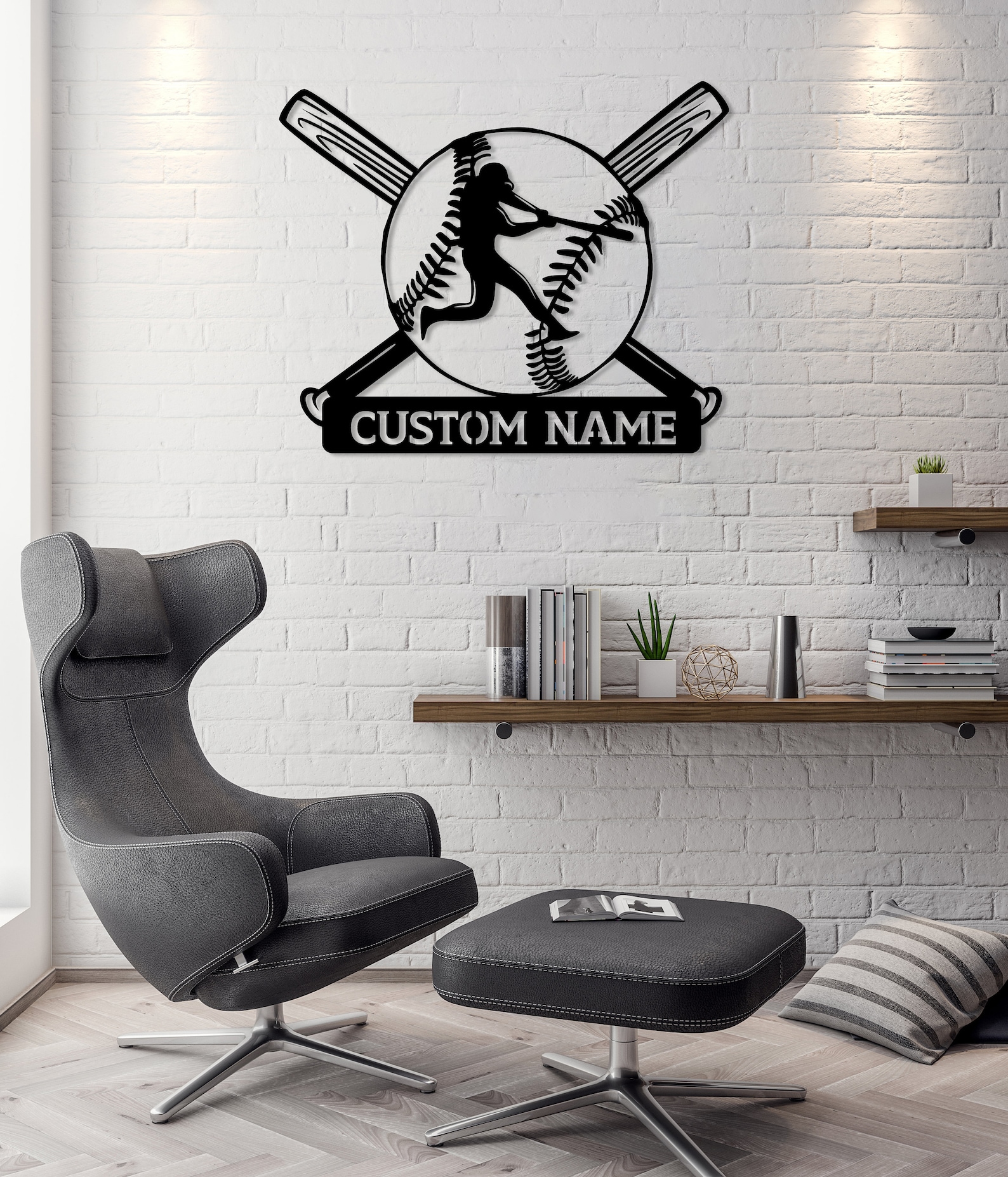 Metal Custom Name Baseball Wall Sign, Personalized Baseball Bat and Ball Wall Decor, Gift for Baseball Players, Custom Team or Name Sign, Art