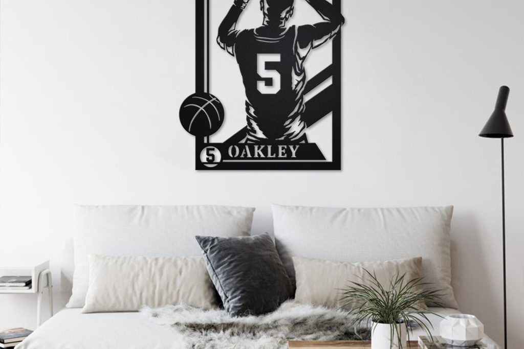 Basketball Metal Sign with LED, Personalized Player Decor