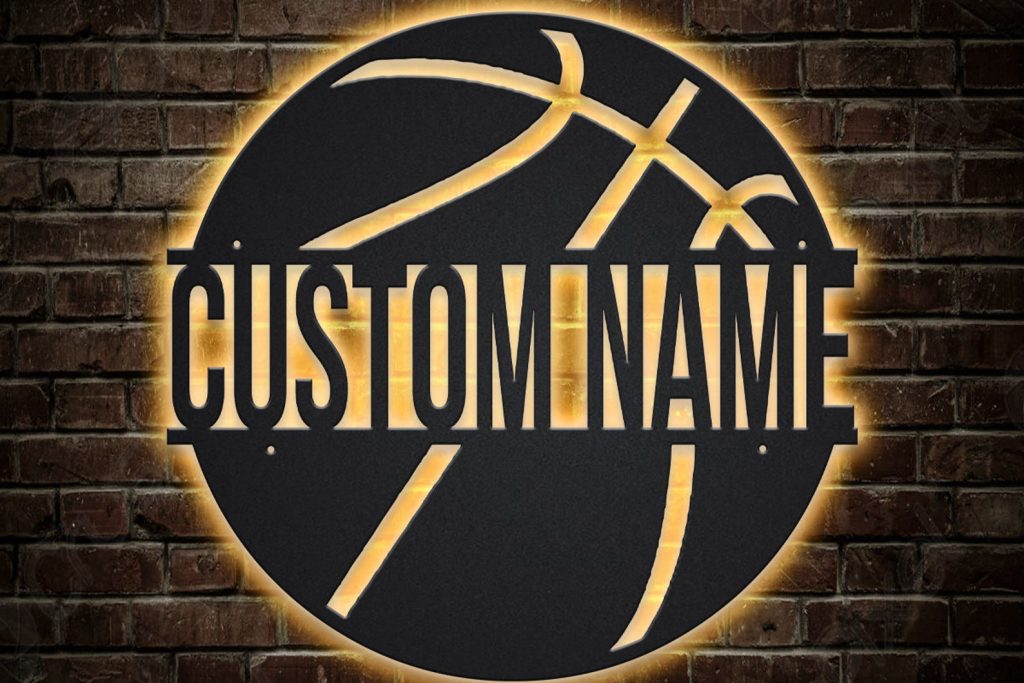 Showcase your love for basketball with this stunning custom basketball monogram metal sign with LED lights. This personalized basketball metal wall art is the perfect way to add a touch of personality and style to your home or office. The LED lights make it even more eye-catching, and it9;s sure to be a conversation starter among your friends and family.