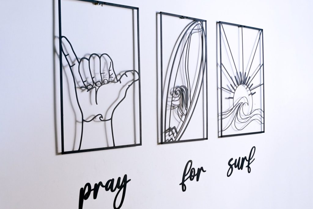 Bring the laid-back vibe of the ocean to your beach house with our surf-themed metal wall decor set, the perfect addition for beach lovers! This set is designed to bring a surf-style touch to your home. This set9;s sleek black finish and metal design make it a flawless and stylish addition to any home decor. Plus, thanks to easy installation, you can quickly enrich your space with coastal charm. Whether you9;re a dedicated surfer or a beach enthusiast, metal wall decor is a must-have for your home. Don9;t wait any longer – bring surf style into your home today!