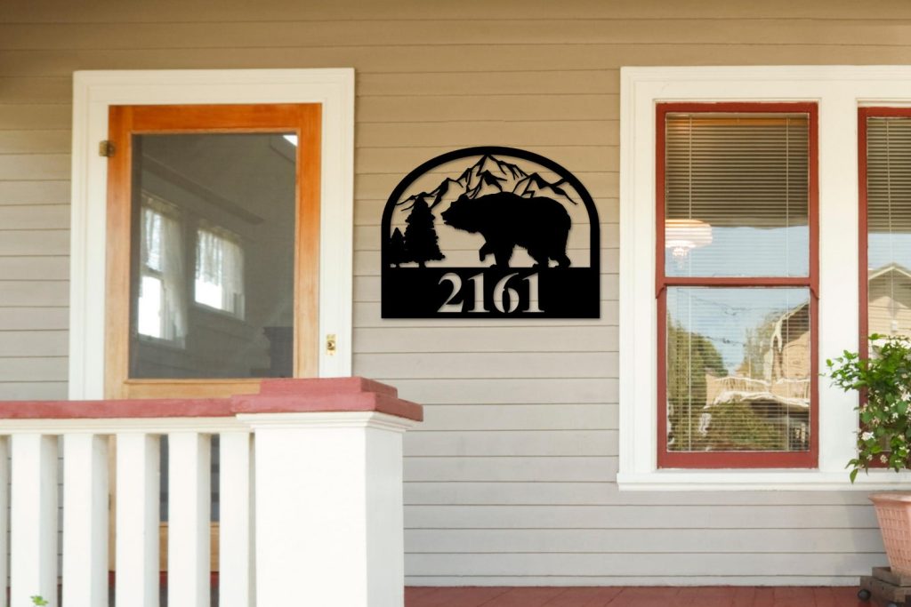 Bear Metal Address Sign with House Numbers