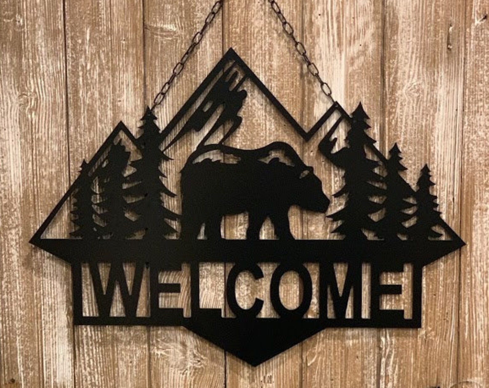 Be the first to review “Bear Scene Sign – 18×24 Custom Metal Cabin Decor”