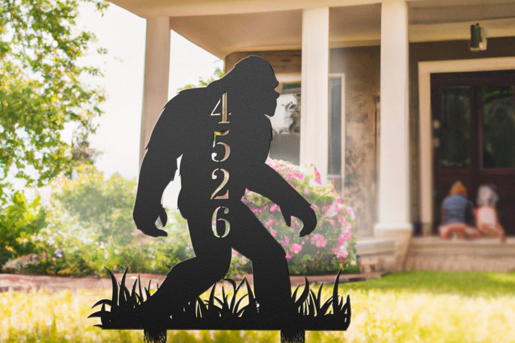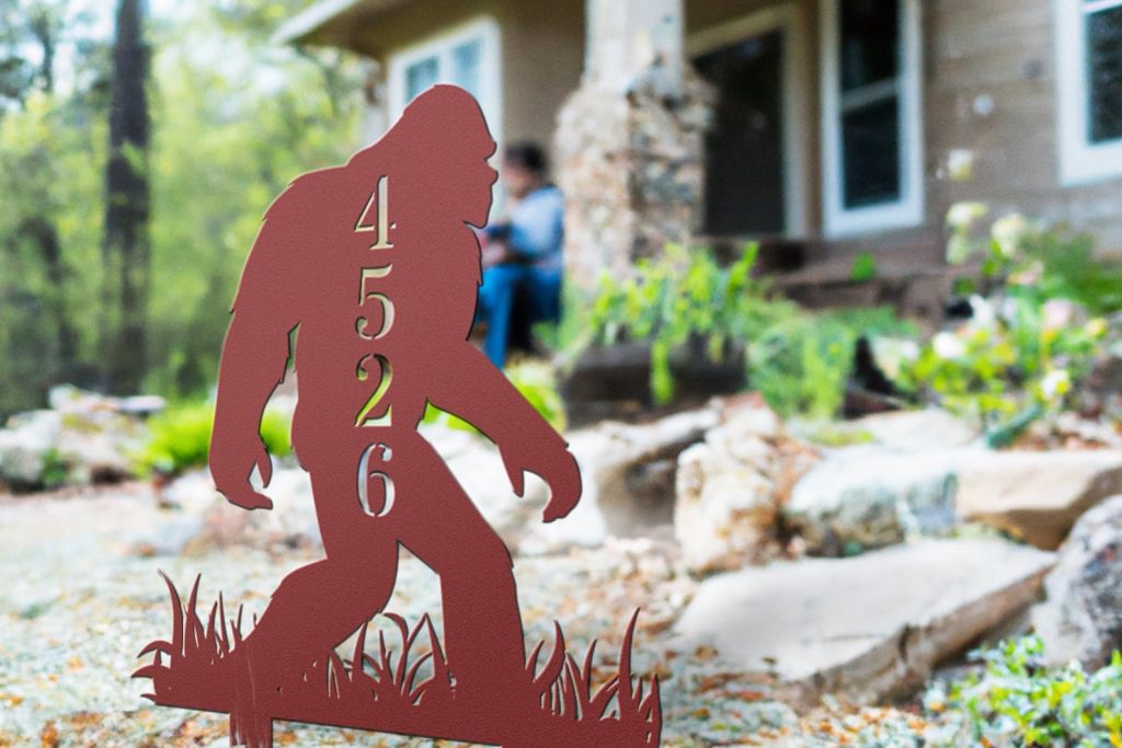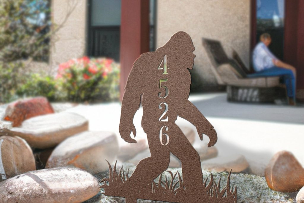 Bigfoot Address Signtsign for YardtSasquatch yetitMetal Street NumbertSign for Groundtwith StakestMountain Cabin decortOutdoor House NumbertSigns for AirBNBtlarge black whitetcopper steel redthousewarming giftthunting camp signs