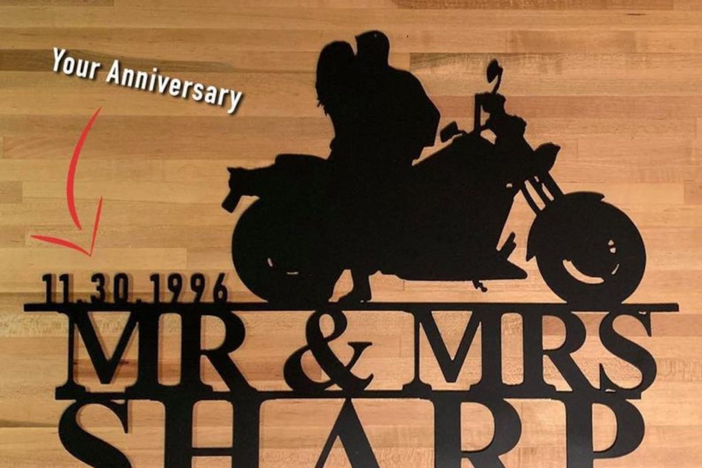 Sweet Ride9;s biker wedding gift is laser-cut. The Happily Married Biker Couple Personalized Wall Art brings together your most significantly meaningful bond into a design that truly speaks from the heart, bringing incredible meaning to any wall it adorns.