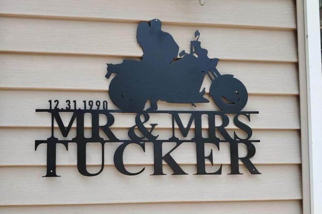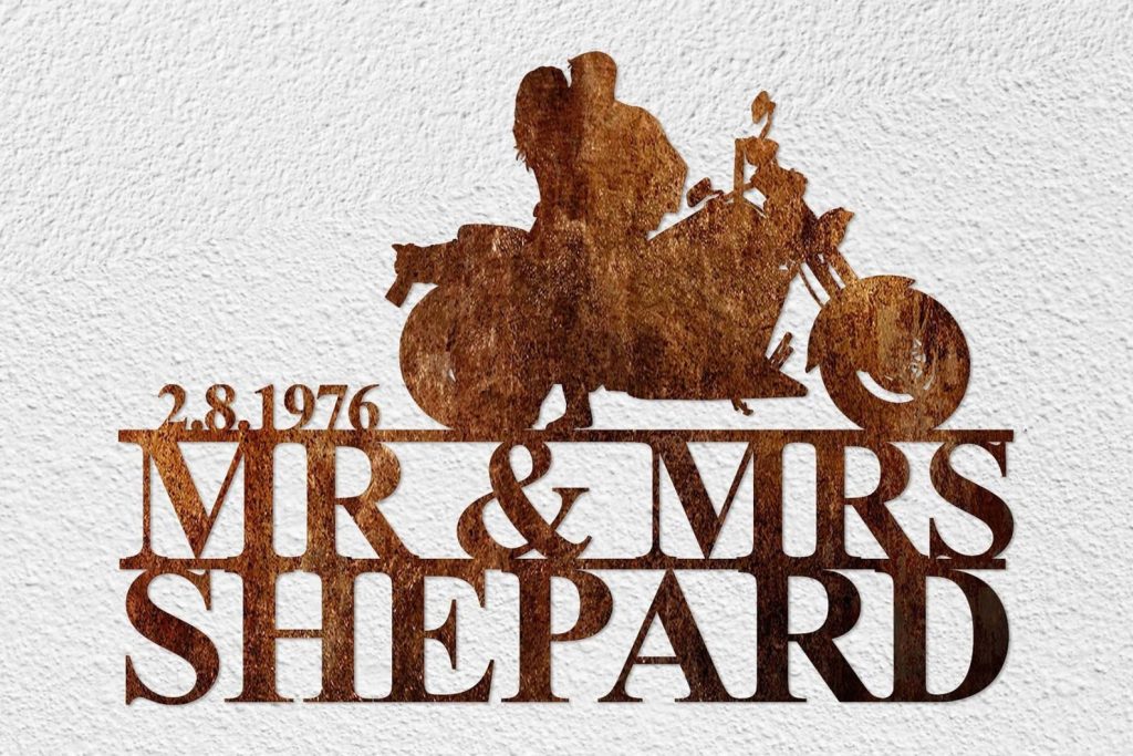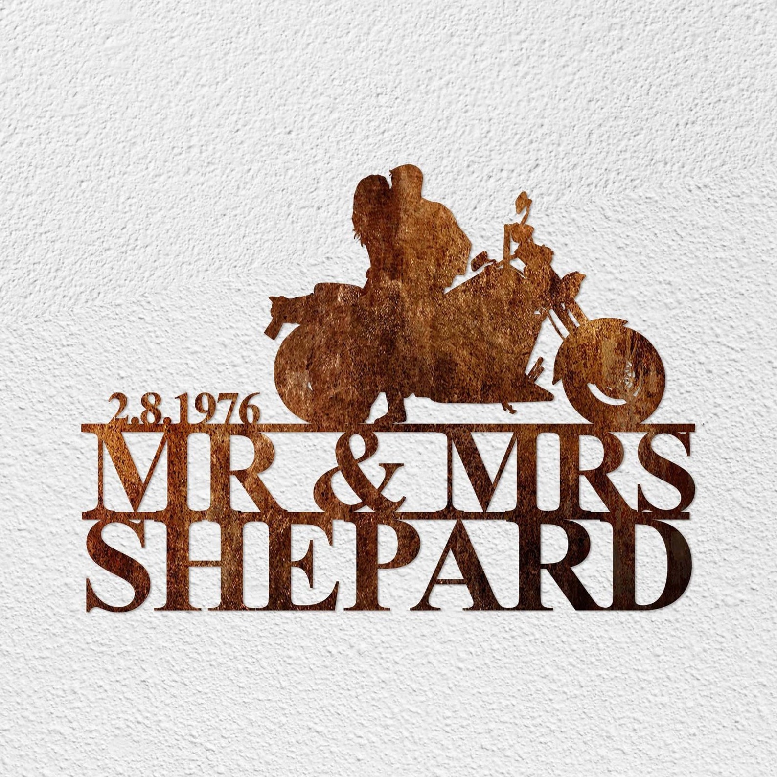 Biker Housewarming Gift PERSONALIZED Married Husband Wife Biker Couple Metal Wall Art Wedding / Anniversary / Birthday Gift