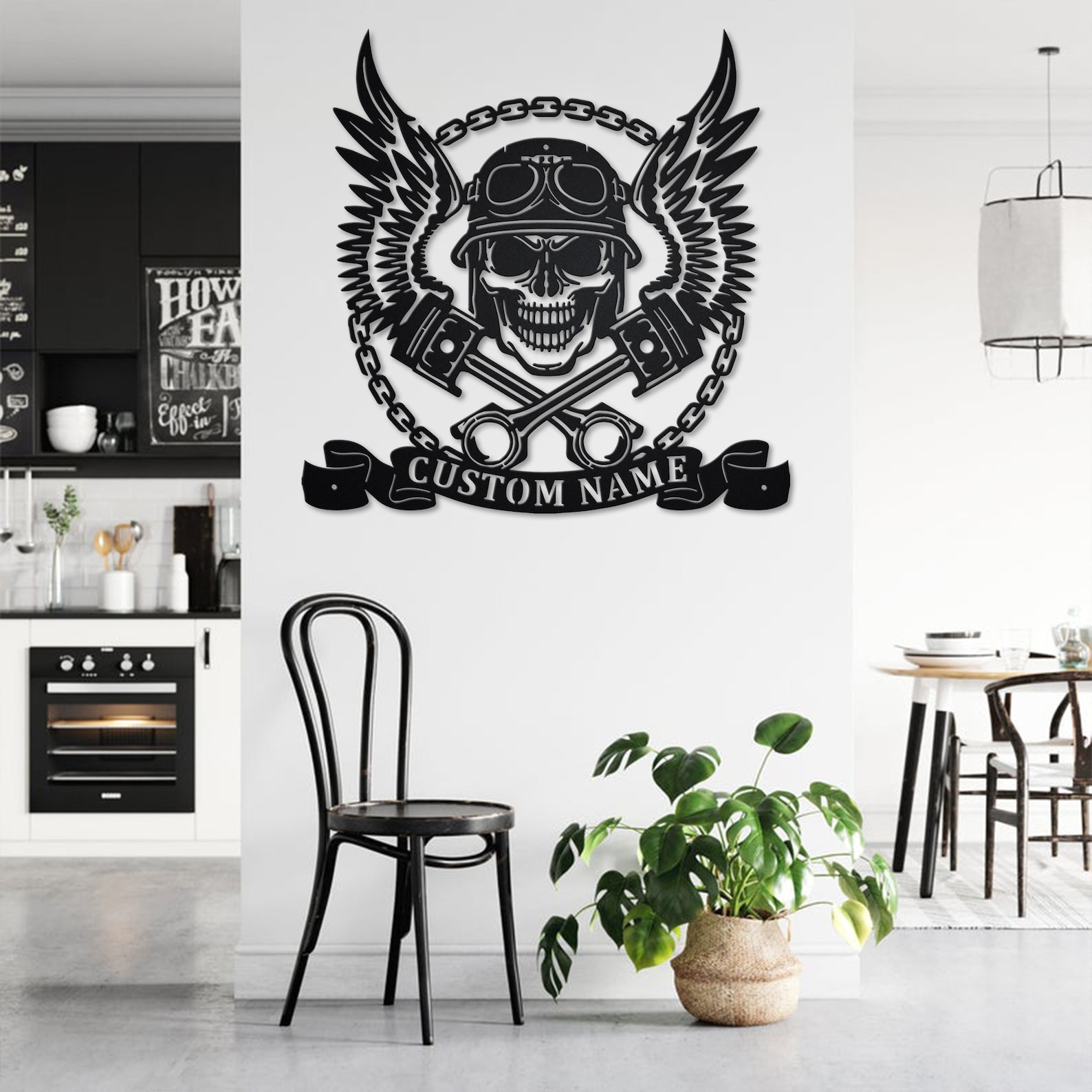 Be the first to review “Biker Skull Art – Wings, Pistons, Personalized”