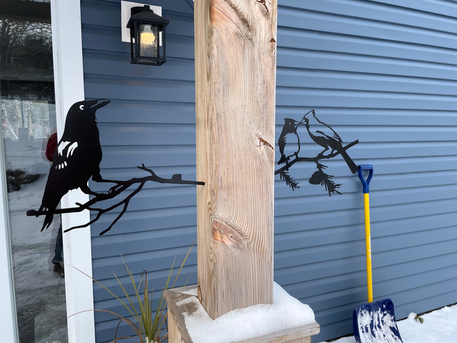 Metal bird silhouettes can be installed in any wooden post or tree by simply pre drilling a hole and pushing stake in until secured firmly