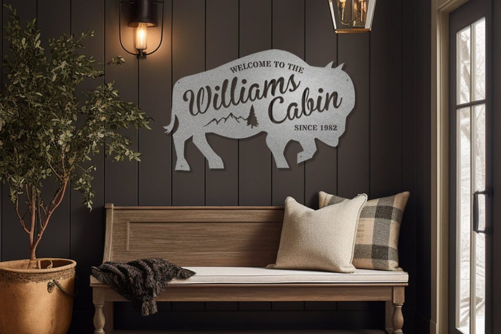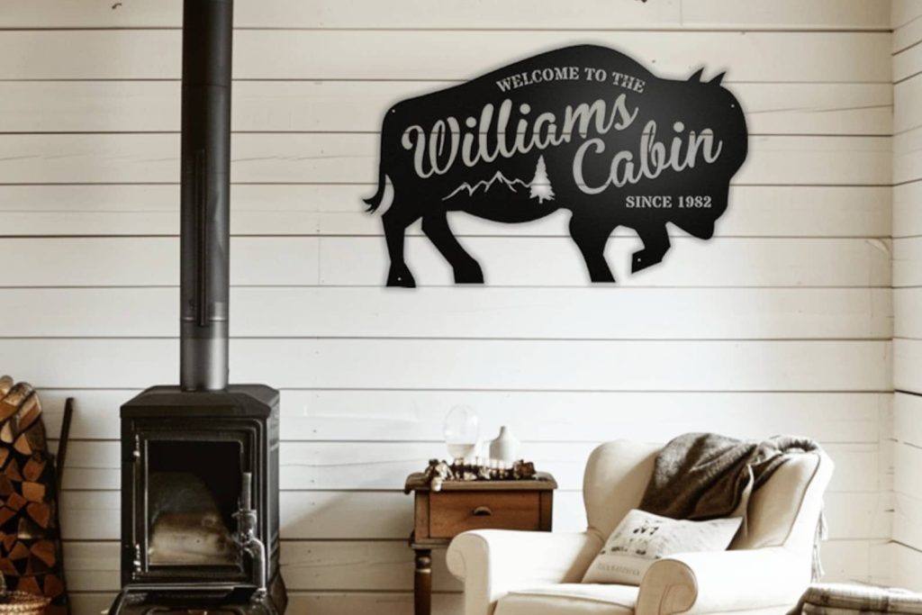 Be the first to review “Bison Shaped Sign, Mountain Cabin Decor”