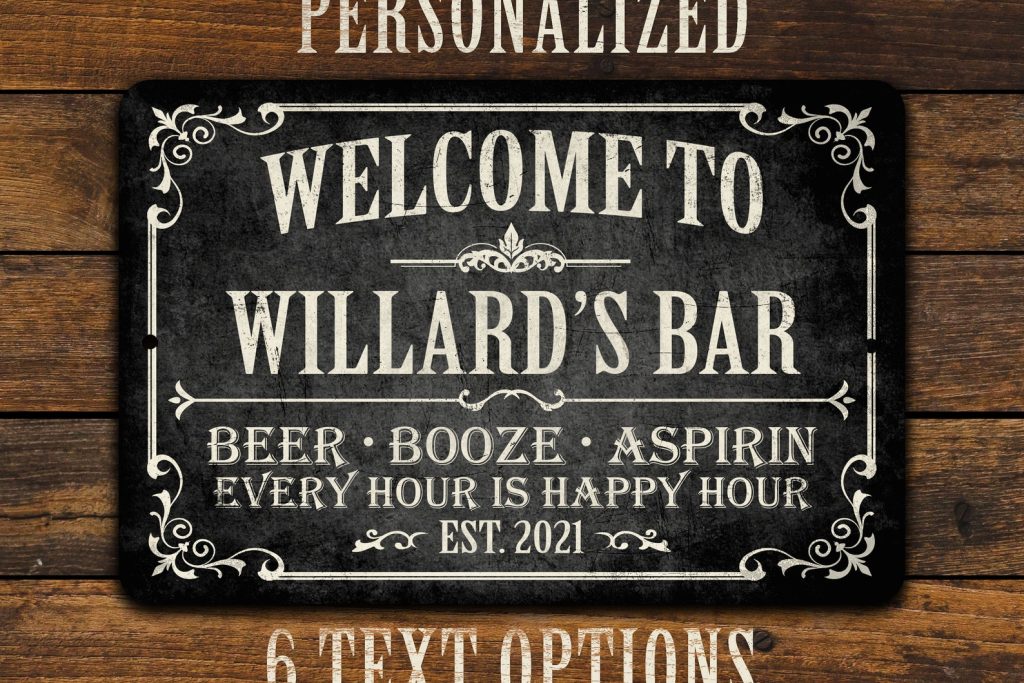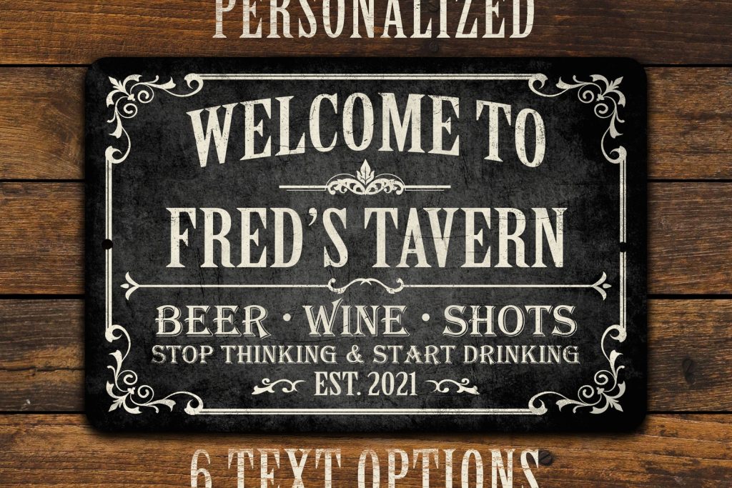 Personalized Vintage-look Bar Sign | Customize this sign | Great Gift | Customize this sign with your first name, last name or whatever bar name you choose. Designed with a weathered, antiqued look. This sign will look great in any bar, home bar, basement, or garage. Let friends and family know etly where the party starts at your place!