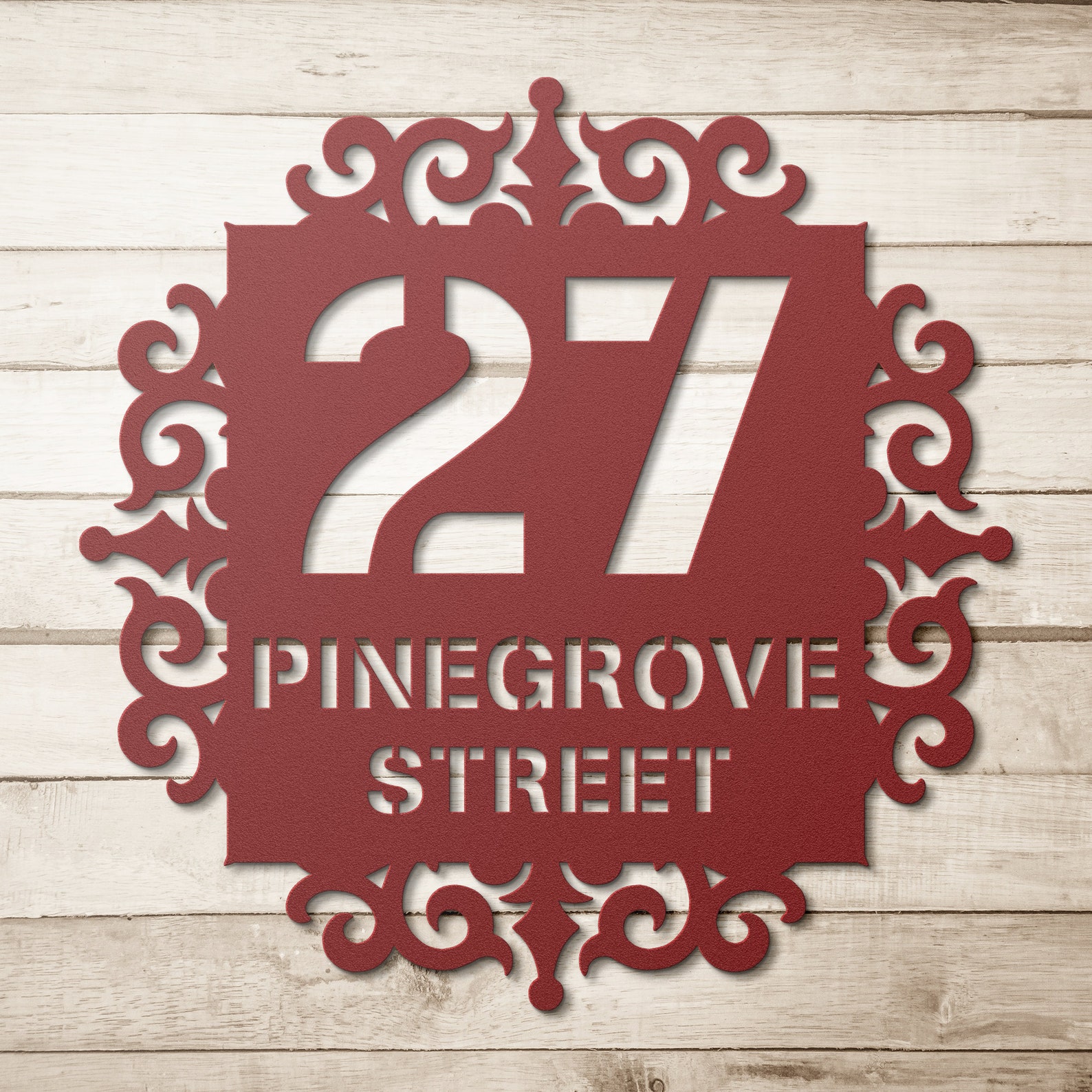 Made with American steel and powder coated in your choice of 5 colors, this sign is built to withstand the elements for years of enjoyment. Powder coating results in a thick, dense finish on metal products which can be more durable and longer-lasting than conventional painting. Add a touch of elegance to your home on the inside, outside, or both!