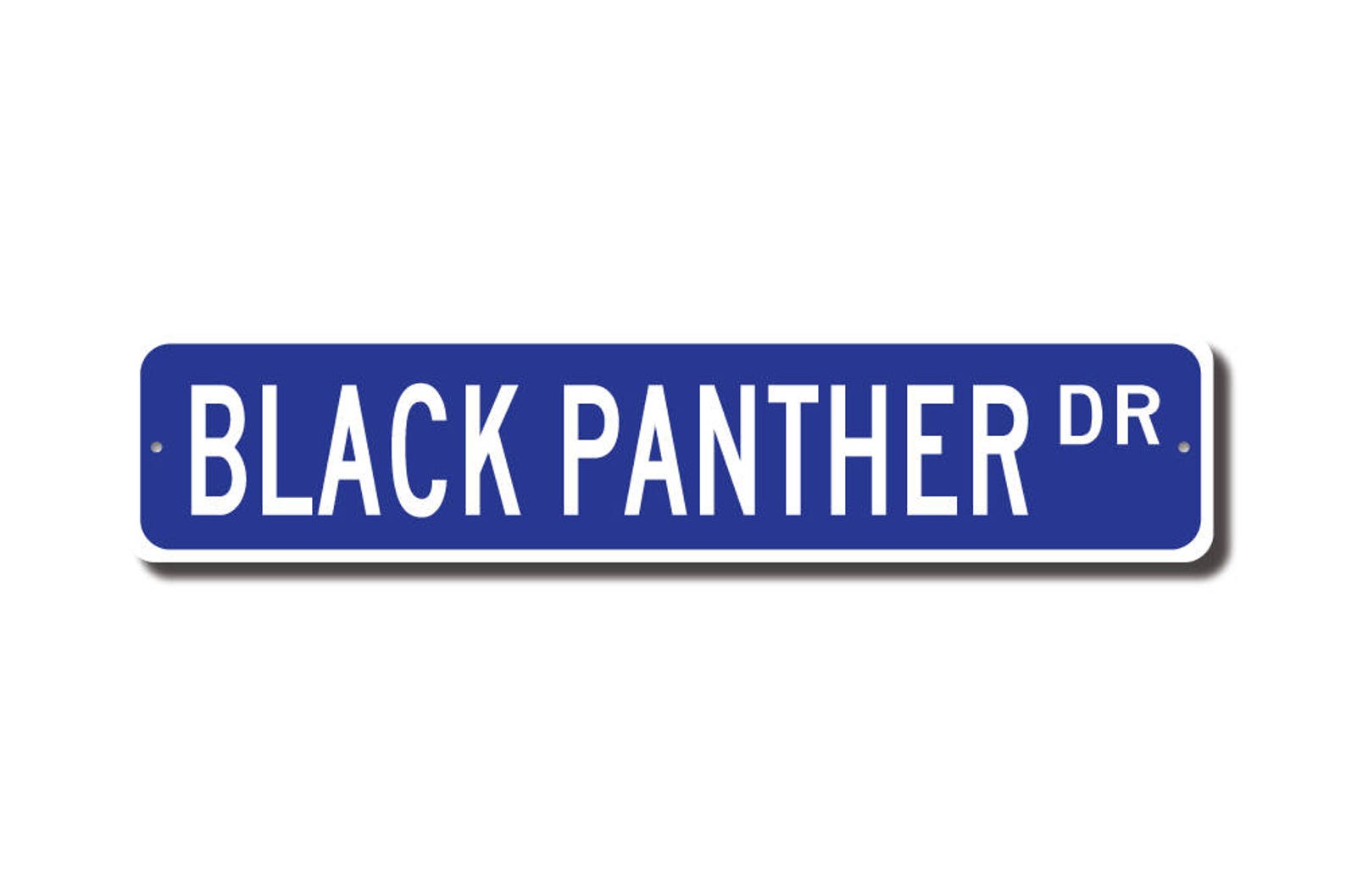 Black Panther lovers check out this awesome street sign! This will make the perfect piece for any Black Panther owner, or maybe you are a Black Panther lover and looking for a cool decor piece. Made of premium aluminum it will stand the test of time. This sign will look great in any room, home den, cave, or office! Get this sign for your favorite Black Panther aficionado !