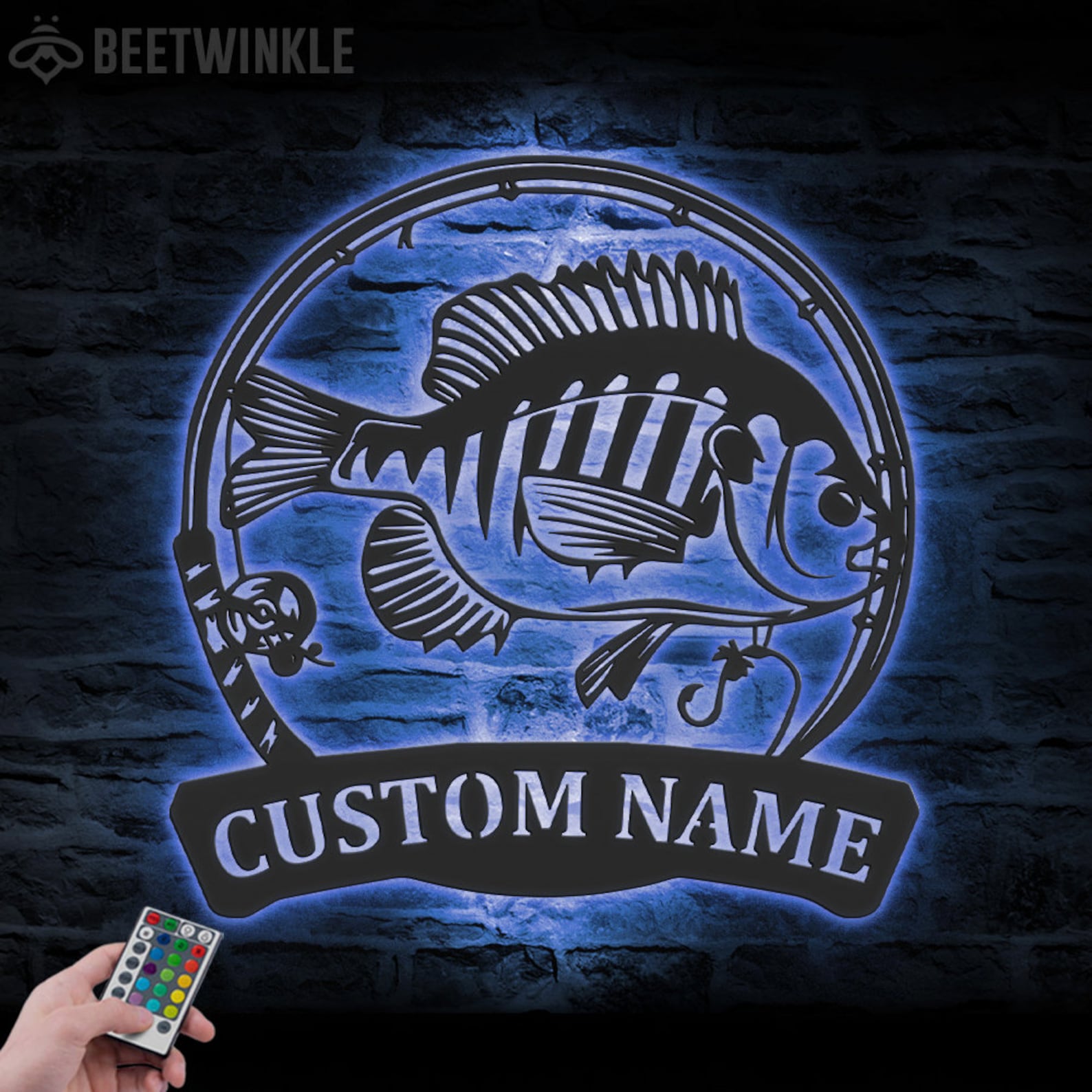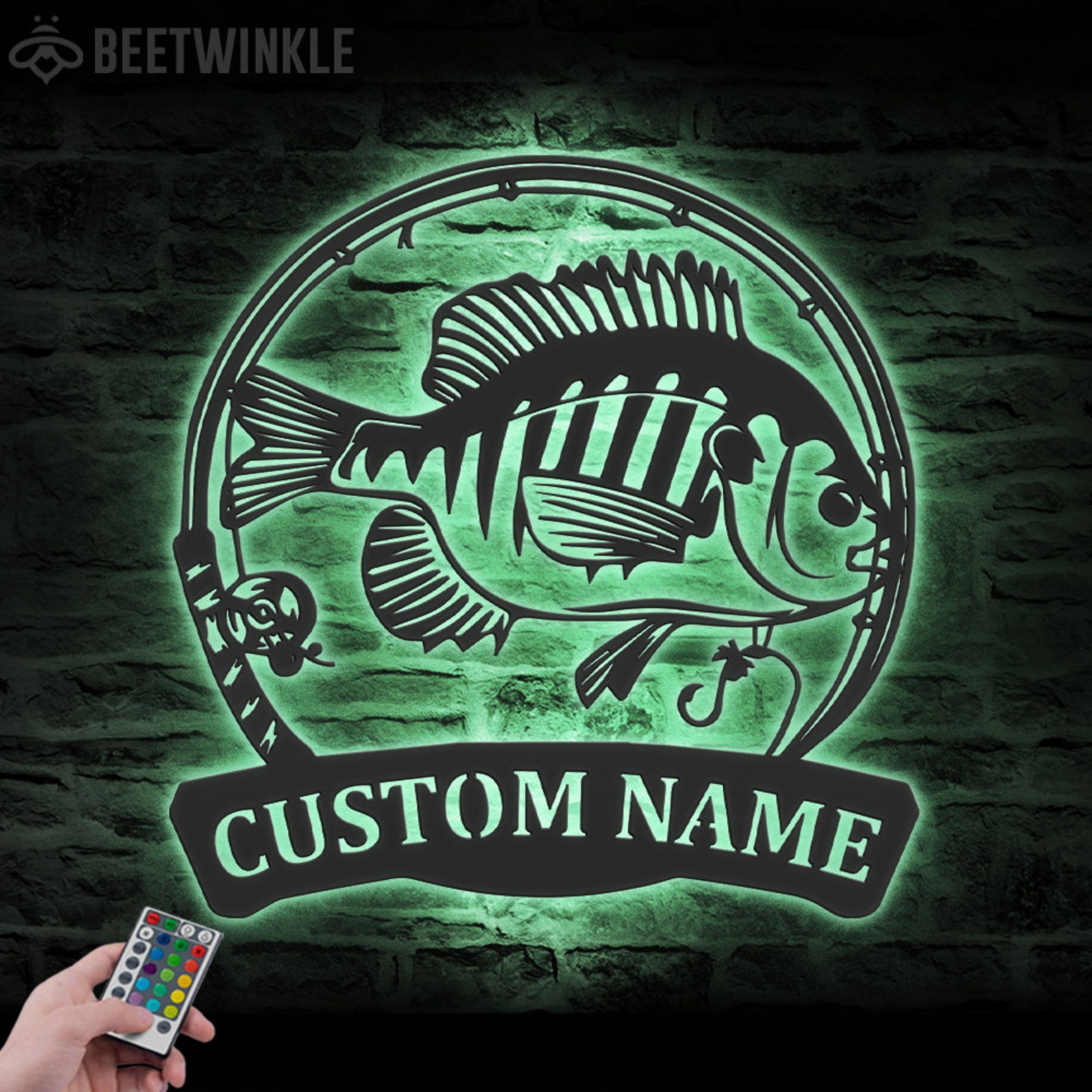 Be the first to review “Bluegill Fish Metal Wall Art with LED – Personalized Fishing Name Sign”