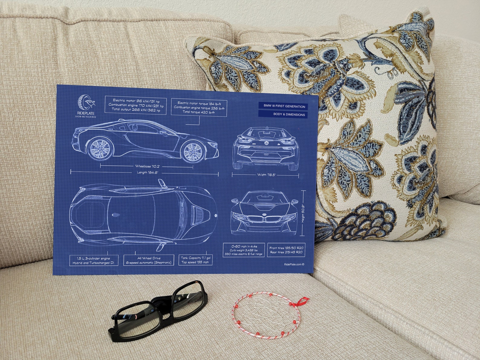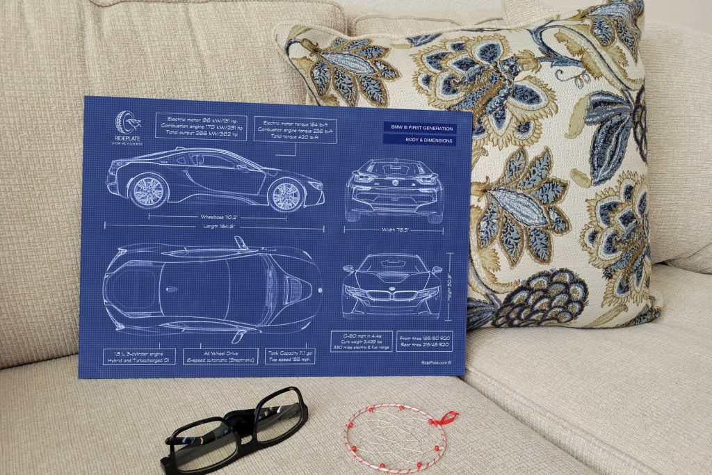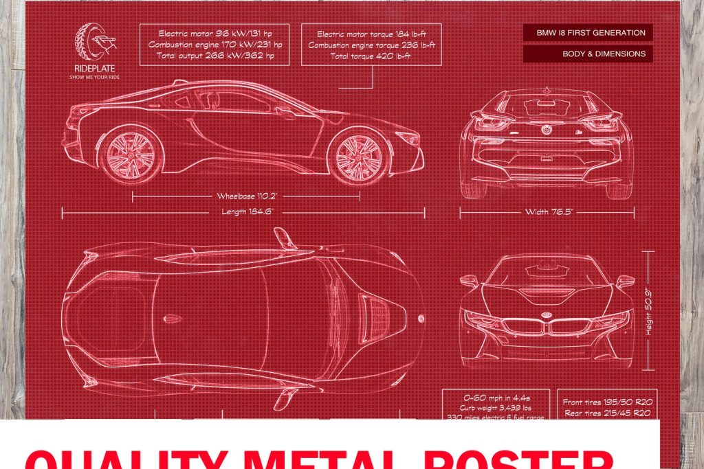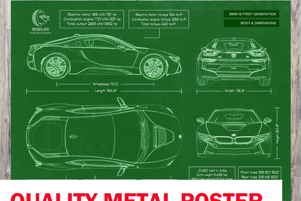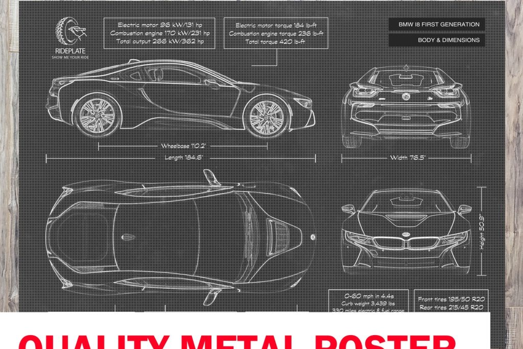BMW I8 Blueprint – Metal Car Enthusiast Gift