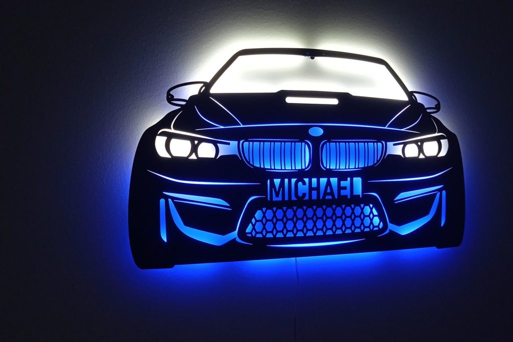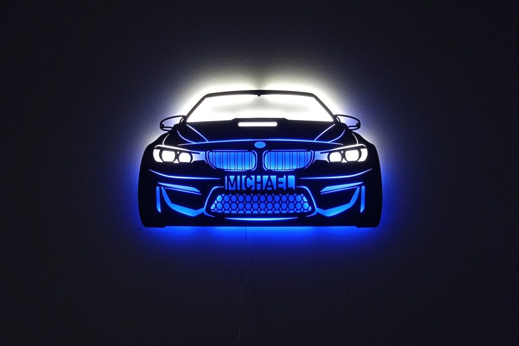 BMW M4 Silhouette, Led Lighted BMW Car Front Wiew Silhouette, Custom Metal Car Sign, F1 Motor Car Silhouette, Car Wall Art, Car Gift For Him