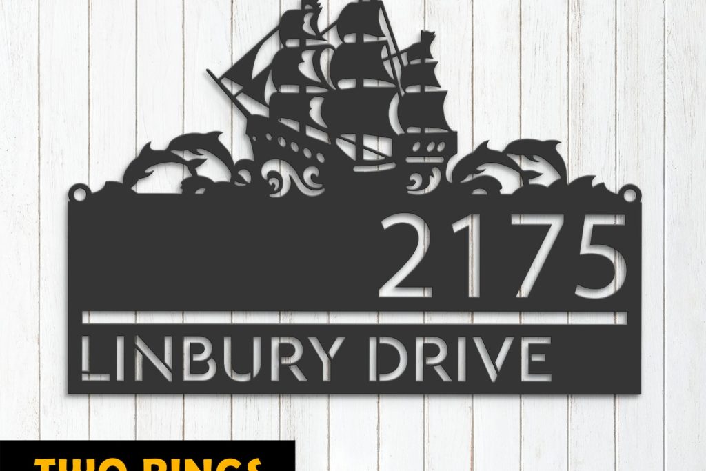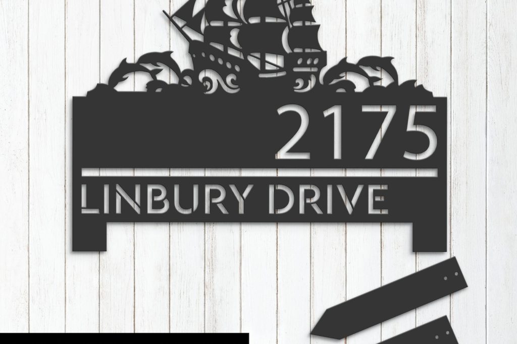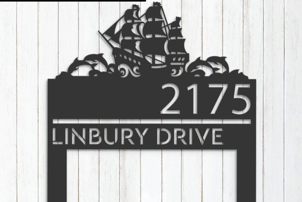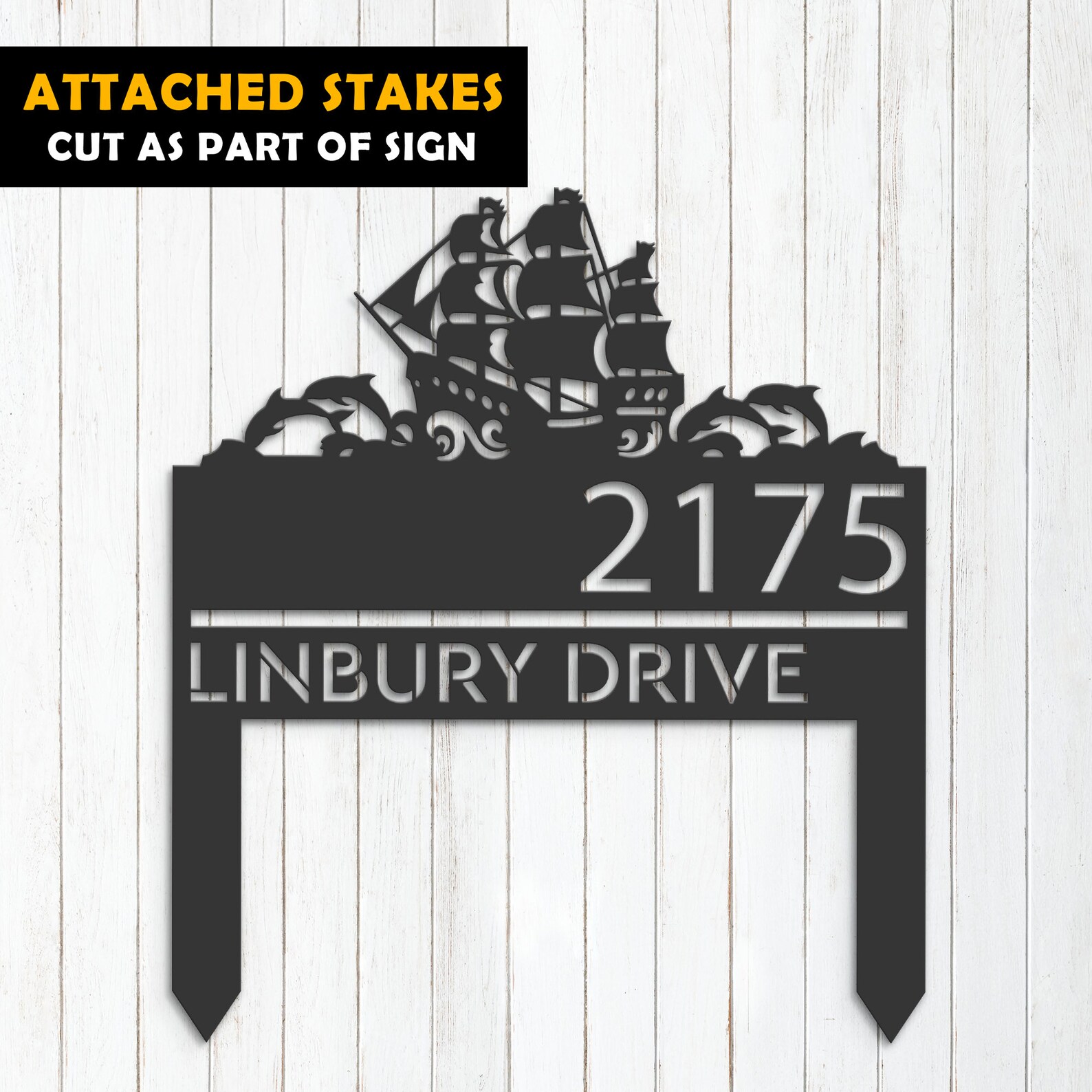 Boat With Dolphins Address Sign – Personal Metal Plaque