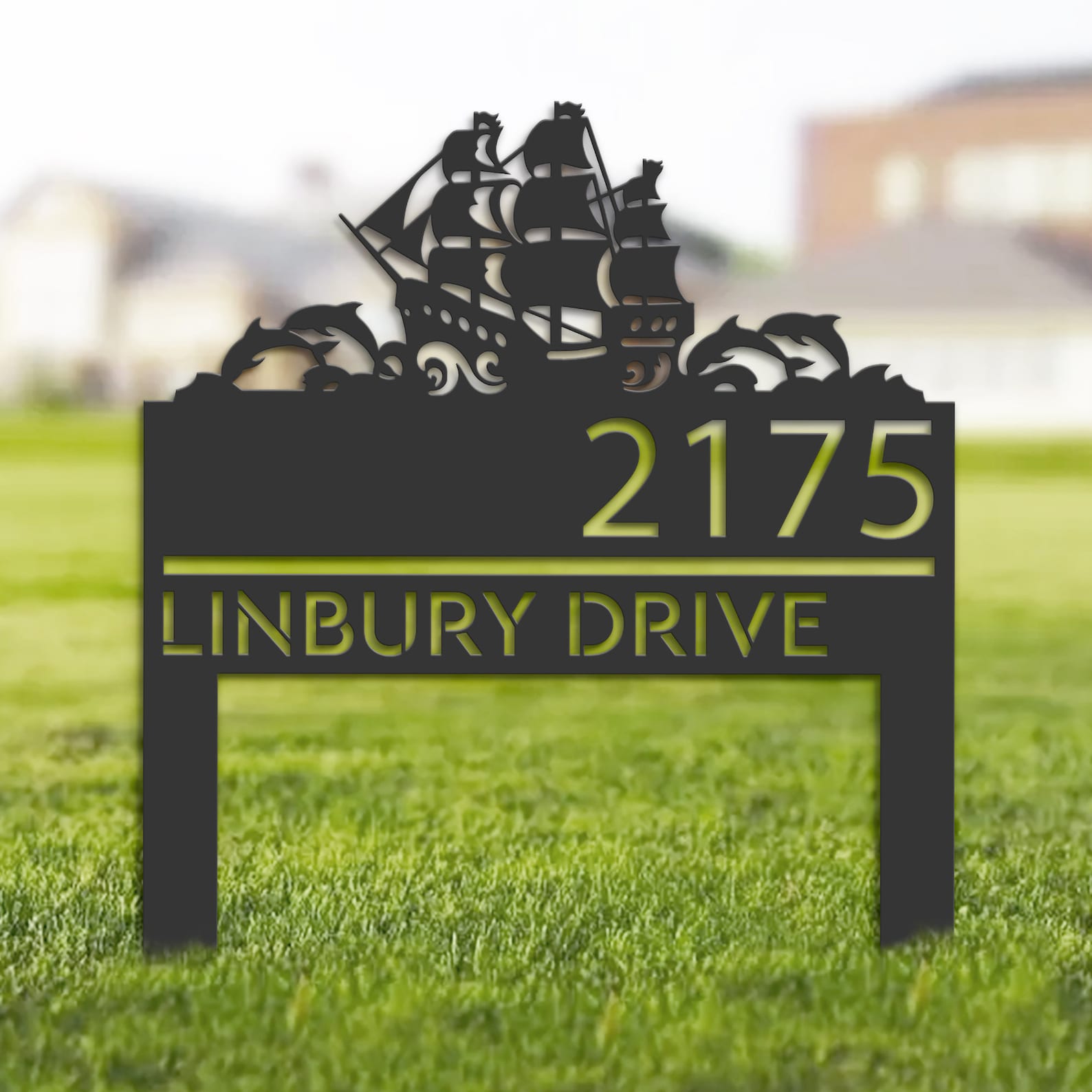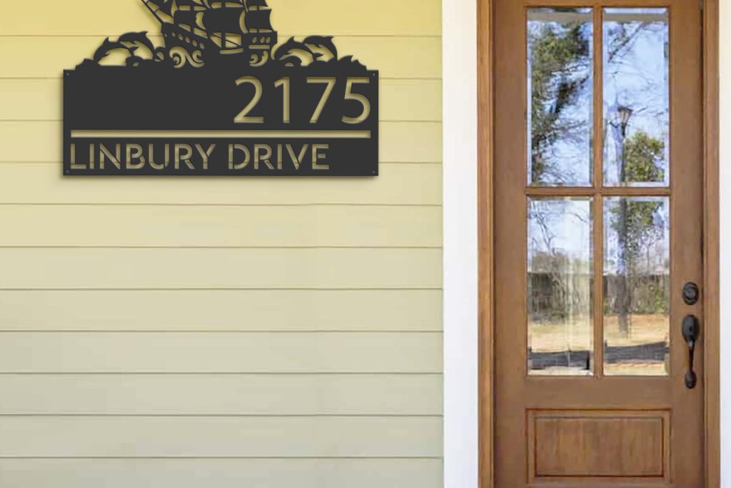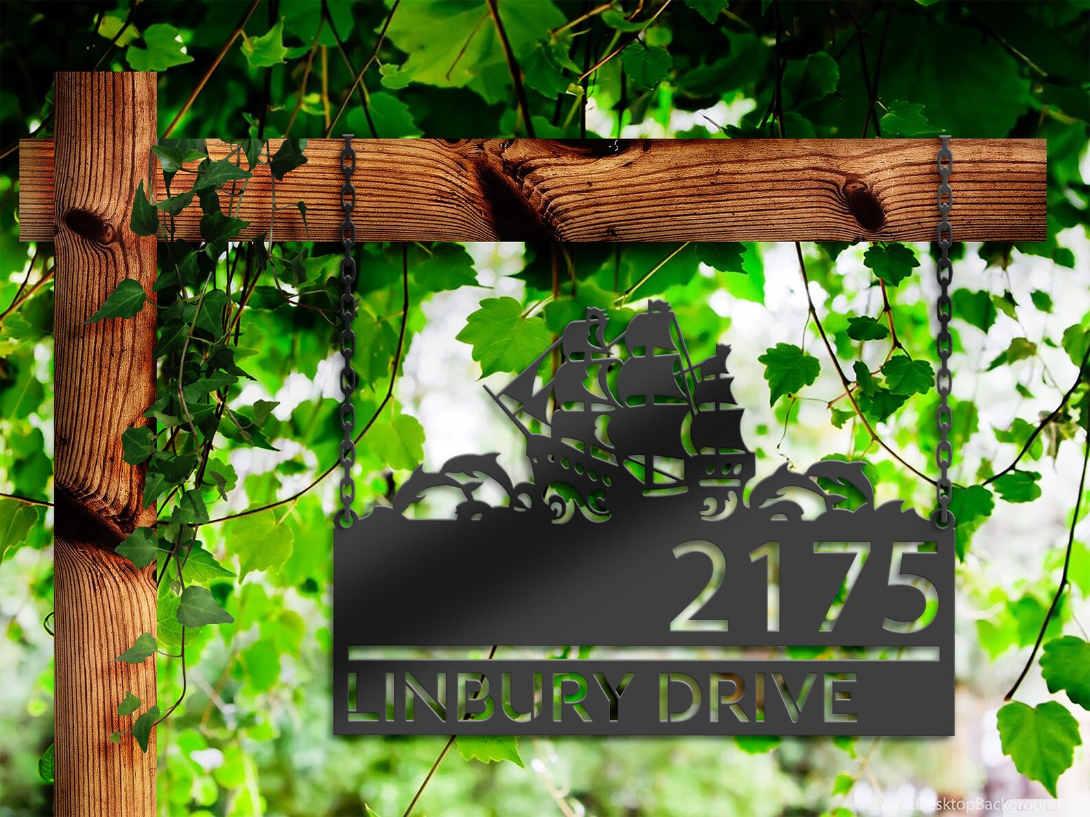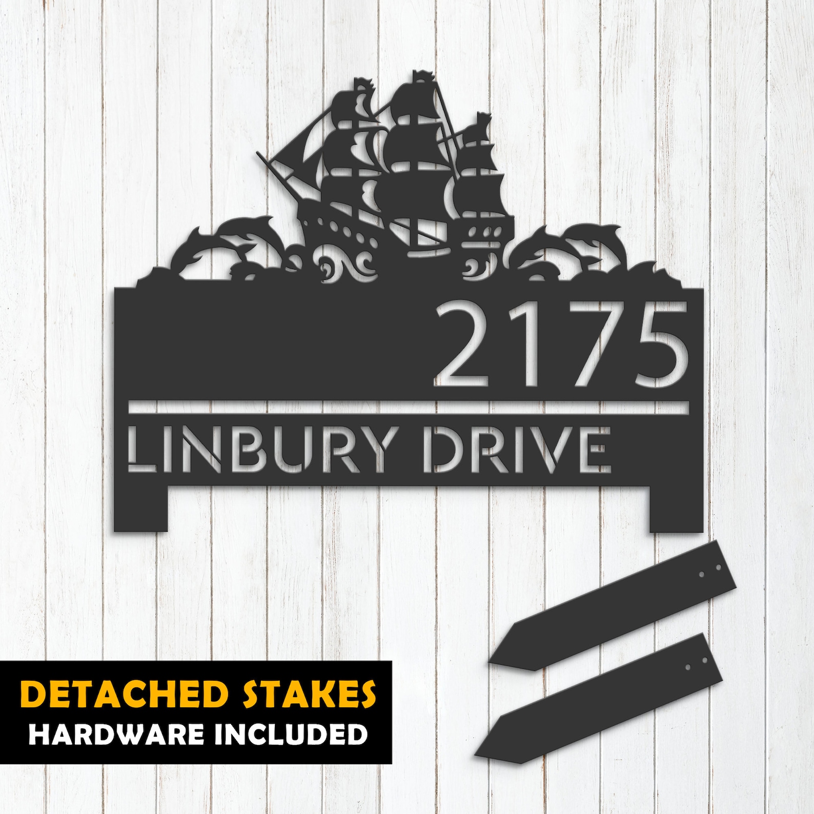Boat With Dolphins Address Sign – Personal Metal Plaque