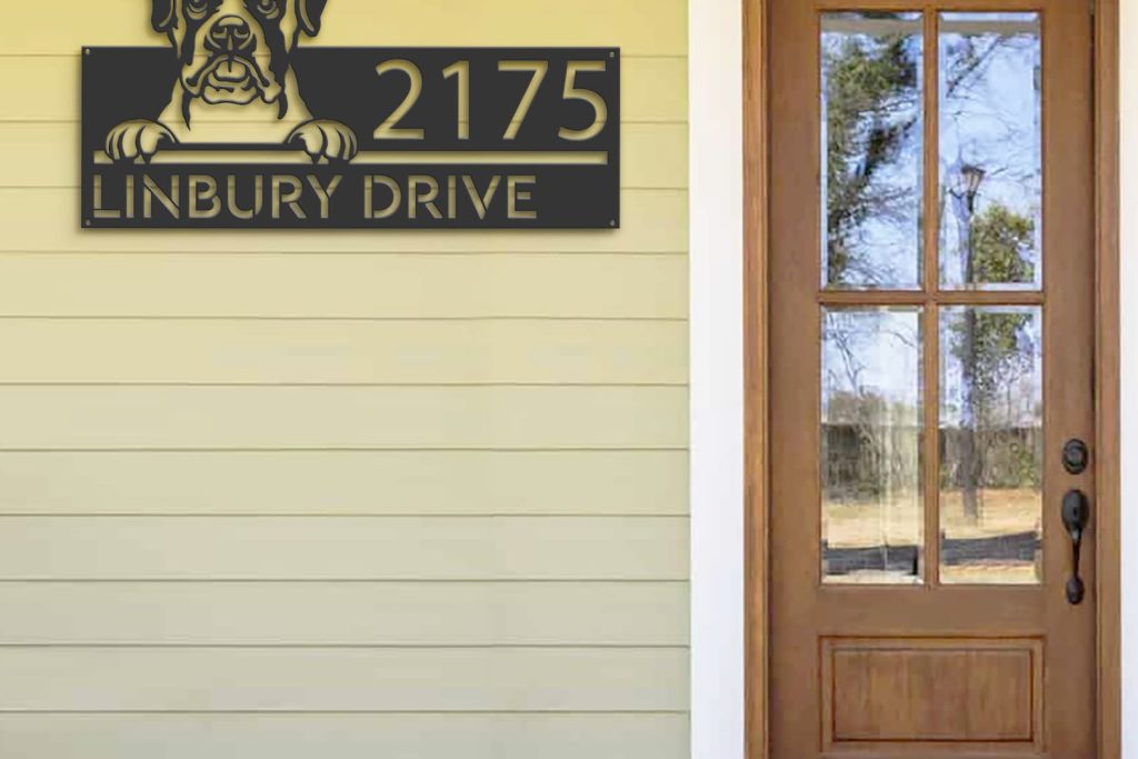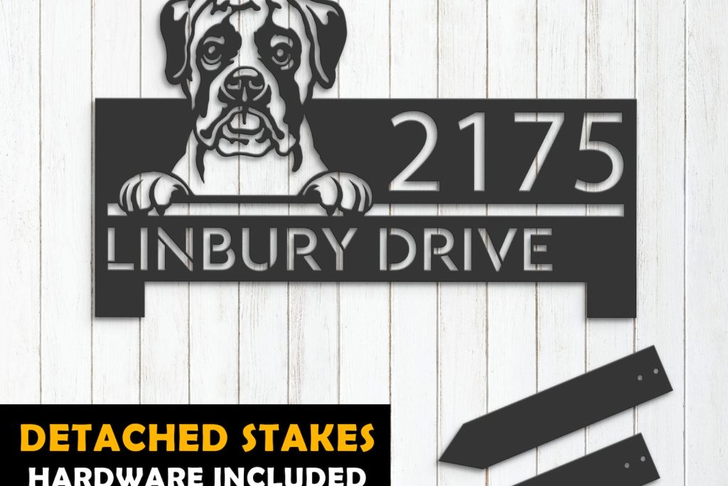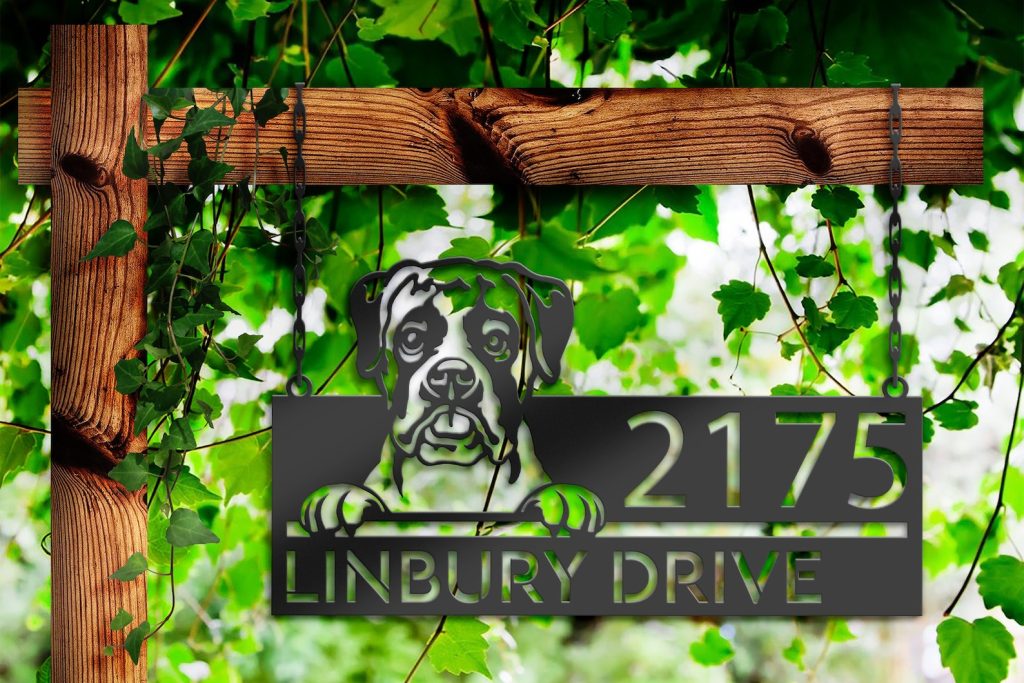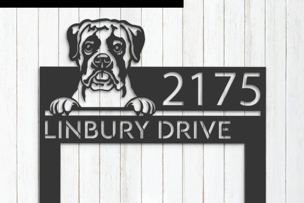 Be the first to review “Boxer Puppy Metal Address Sign for Outdoor Use”