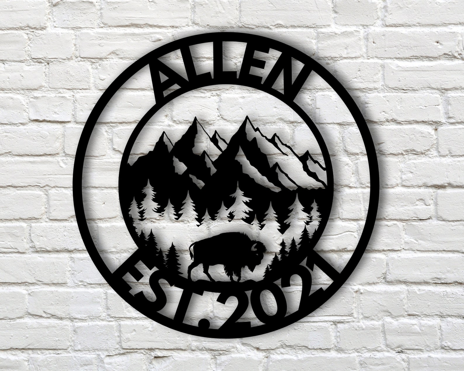 Beautiful Personalized Metal Sign with Mountains and Buffalo !