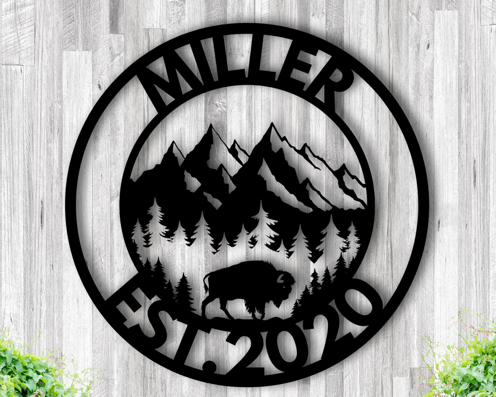 We provide a laser cut personalized sign that gets powder coated. This design has holes in it for mounting, we do not provides screws or anything to hang the sign with due to peoples different preferences. Feel free to message me with any advice on hanging the sign.