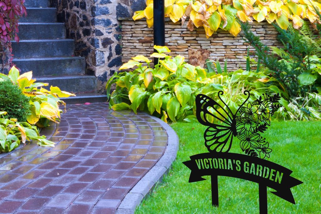 Personalized Butterfly Metal Garden Sign With Stakes, Metal Yard Decor, Custom Flower Bed Sign, Custom Garden Name Sign, Housewarming Gift
