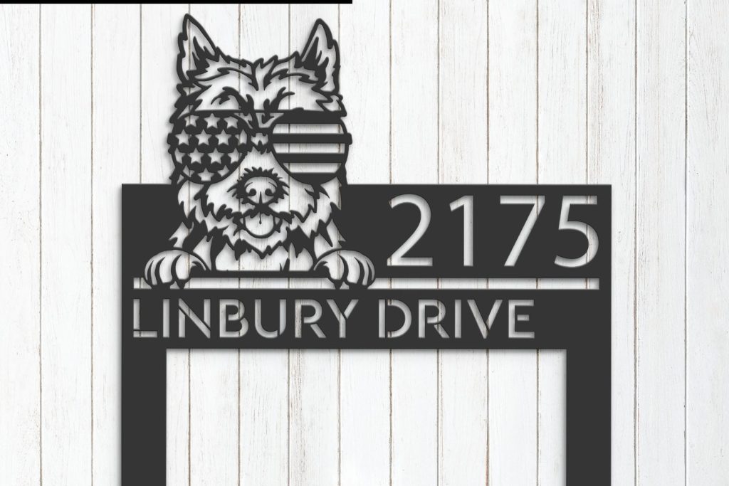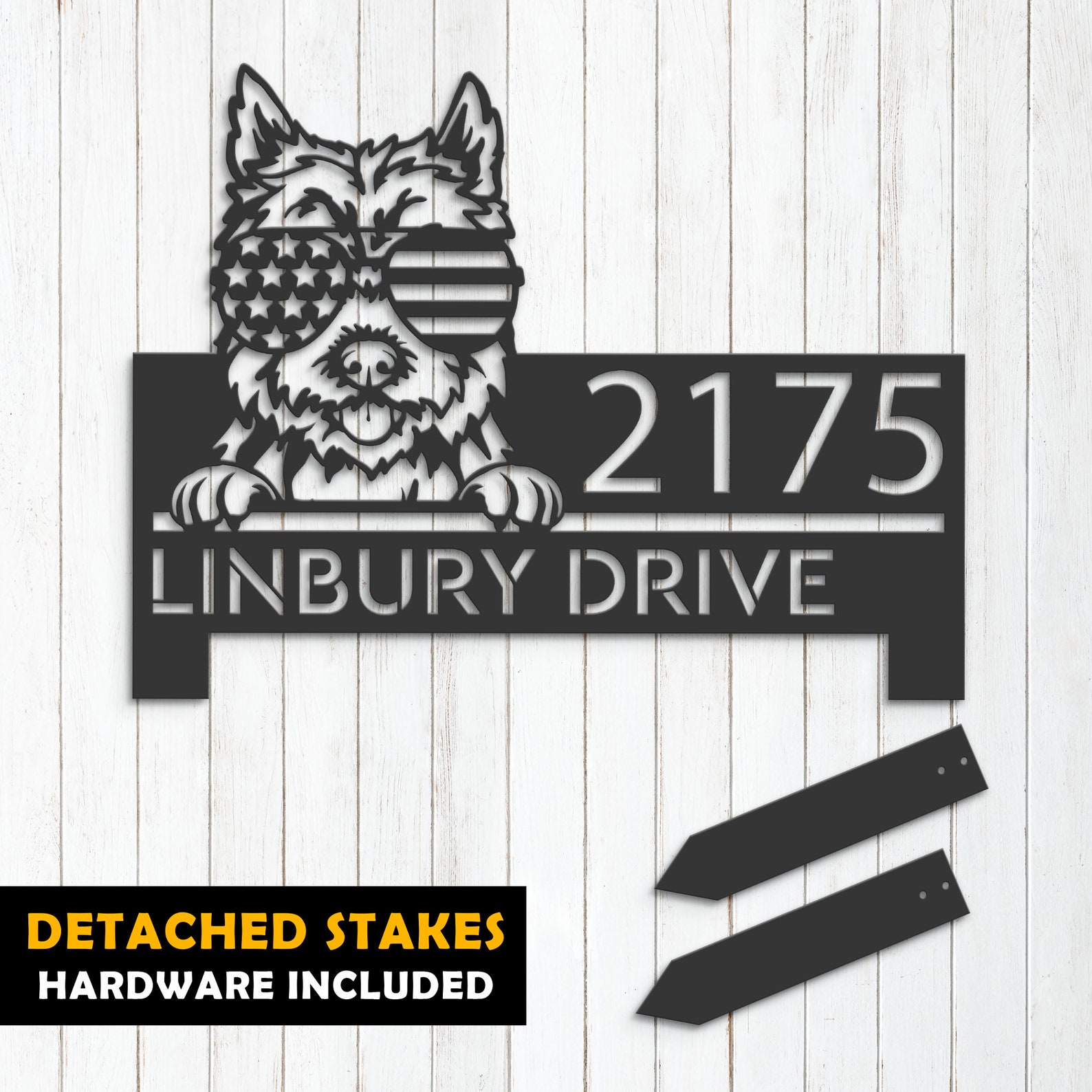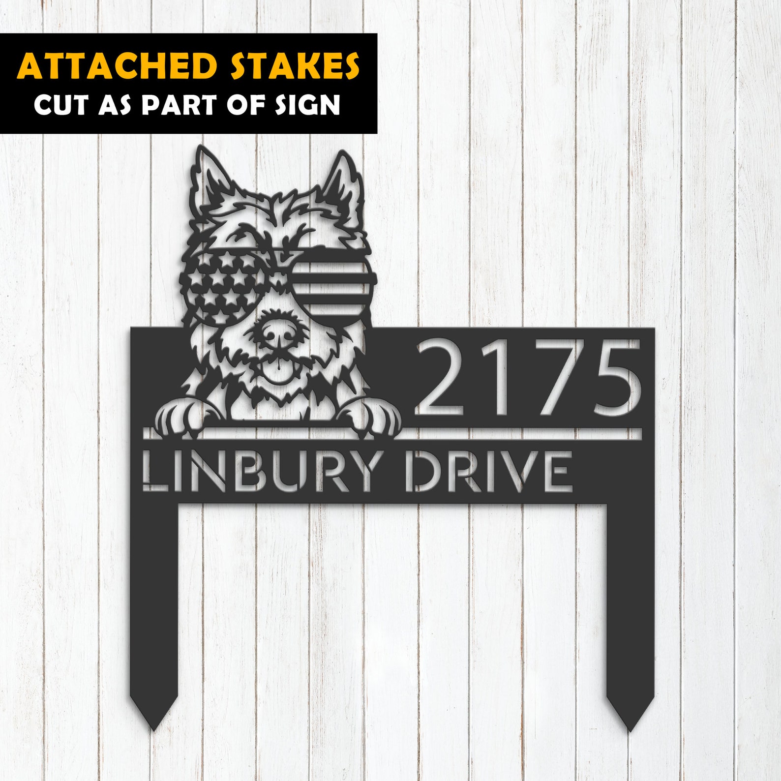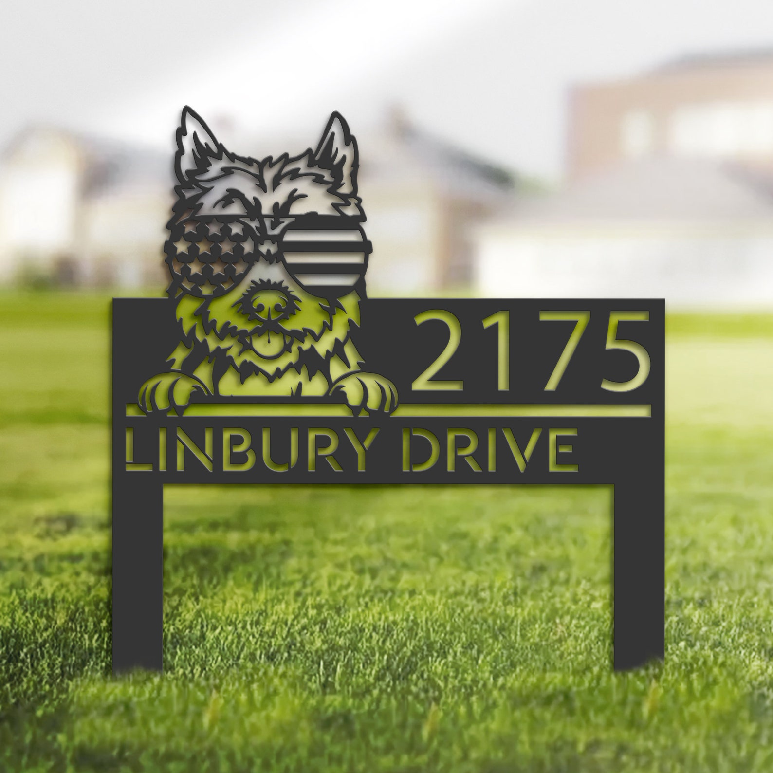 Cairn Terrier with US Flag Glasses Metal Address Sign