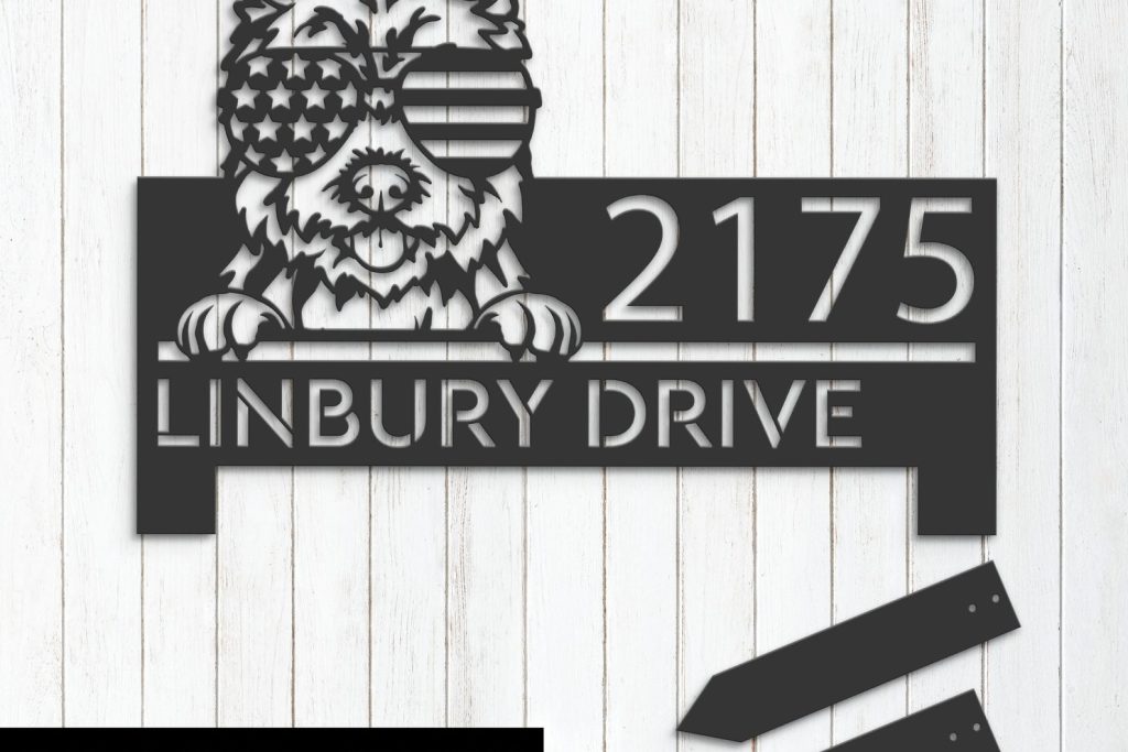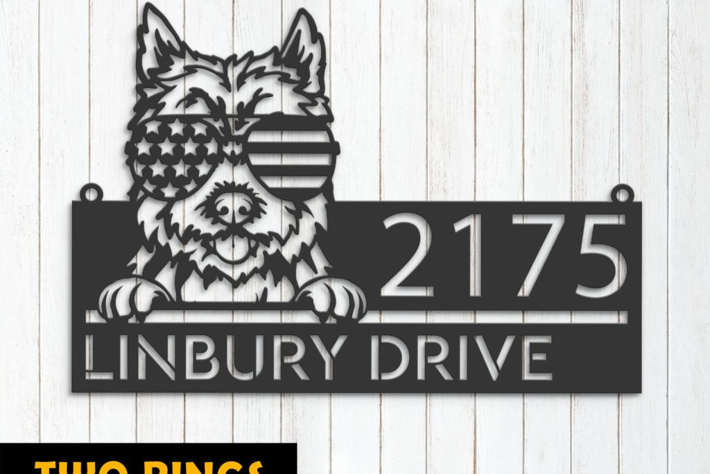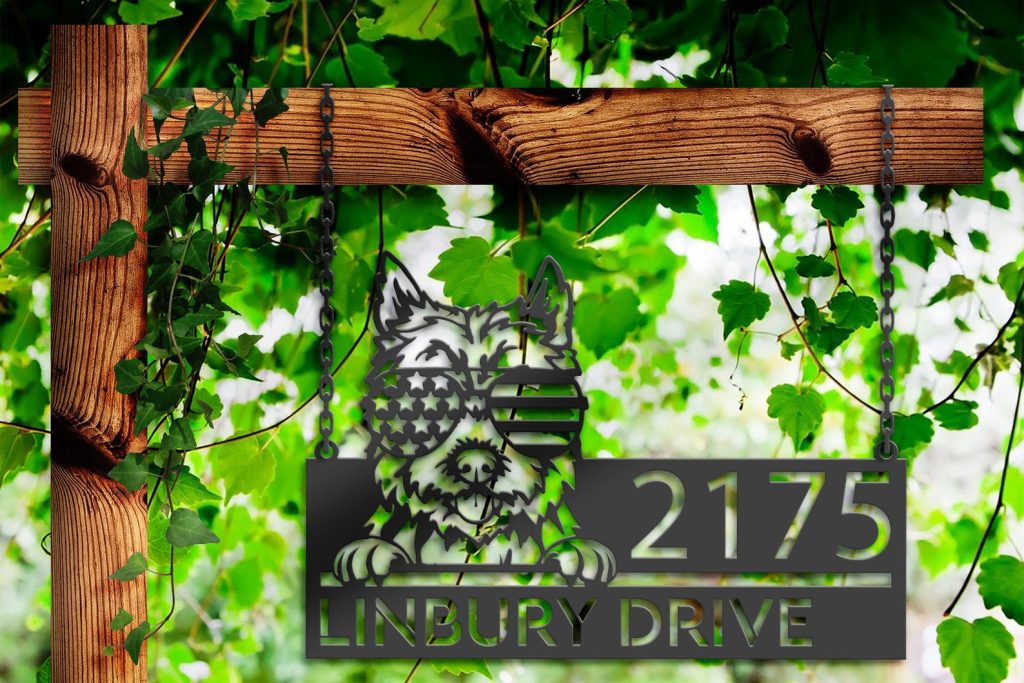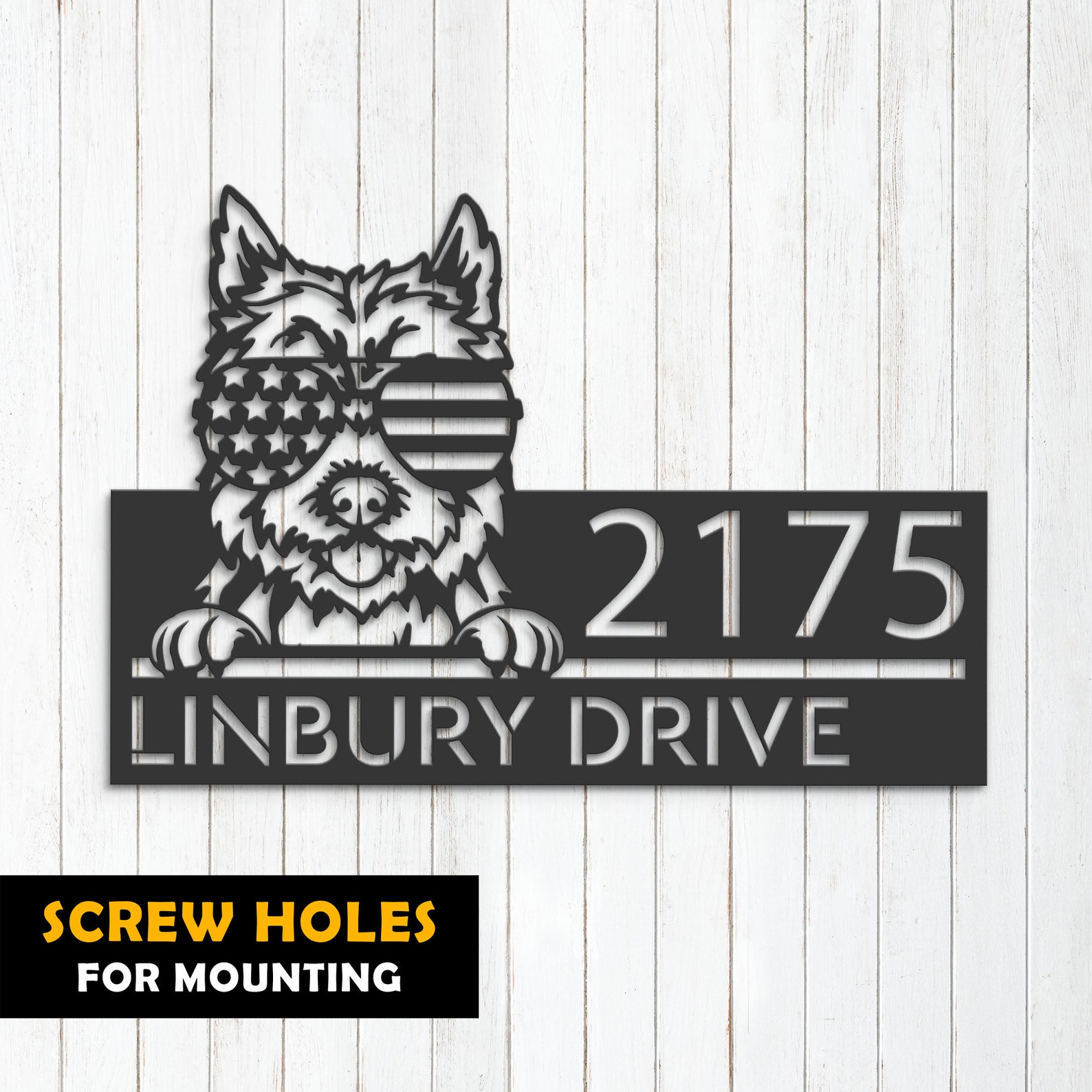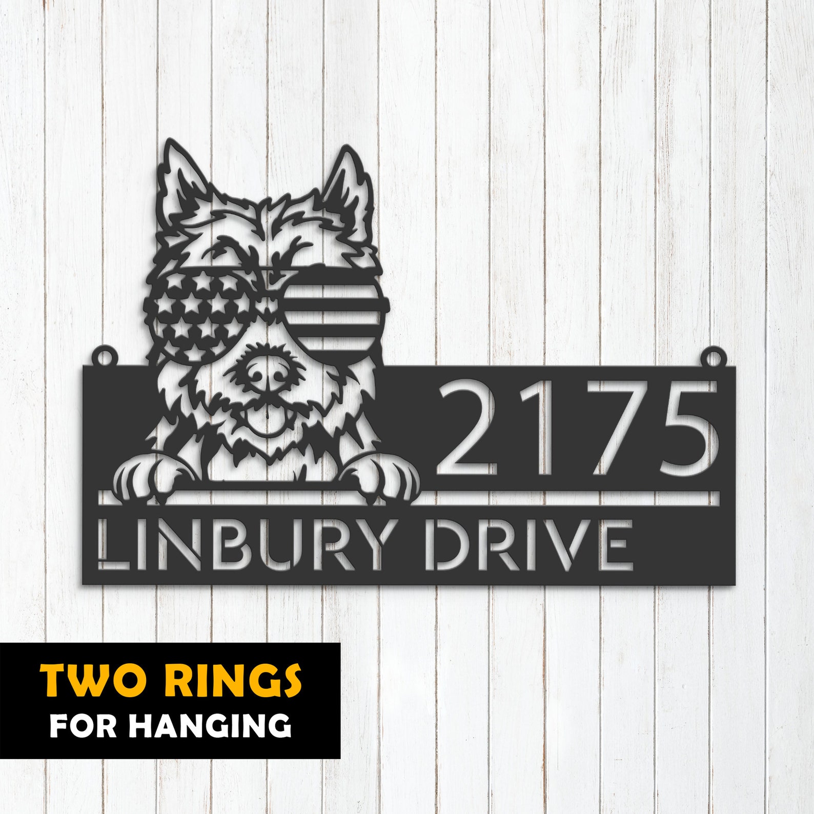 Cairn Terrier with US Flag Glasses Metal Address Sign