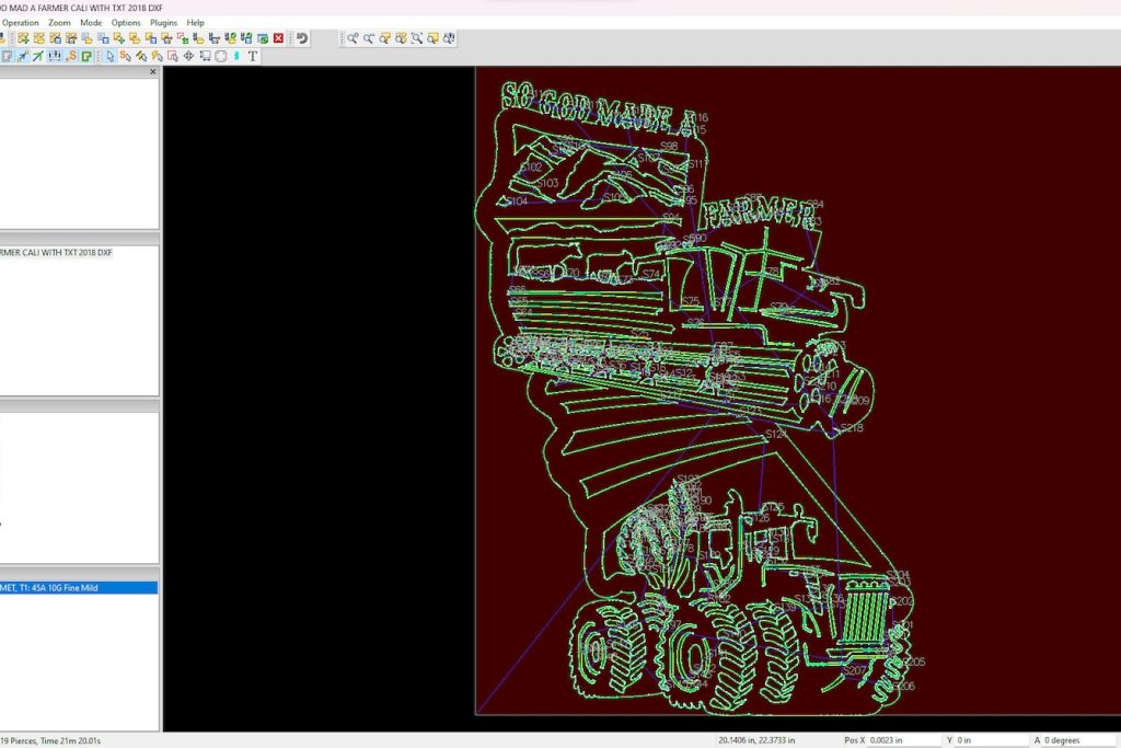 Introducing our California sign laser cutting files for cnc, a detailed god made a farmer sign for metal. This farm and combine sign svg, tractor dxf for laser cutters file bundle includes svg jpg png dwg (r14 & 2018) and dxf files (r14 & 2018) for a full collection of file formats to suit your needs. These versatile cutting files are perfect for creating custom plasma cut ranch signs on your cnc machine and feature clean lines and minimal nodes; they have been sheetcam tested for tolerances.