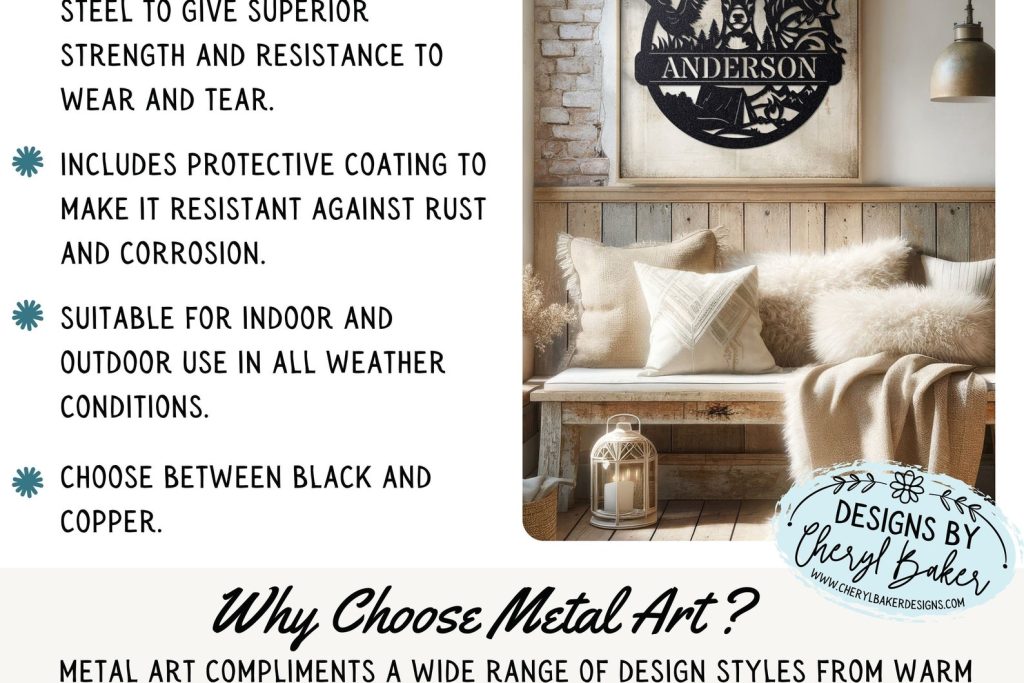 Crafted from tough 18-gauge steel and finished with a powder coat. This powder coating not only looks great but protects your metal from rust allowing you to display it indoors or outdoors in all weather conditions.