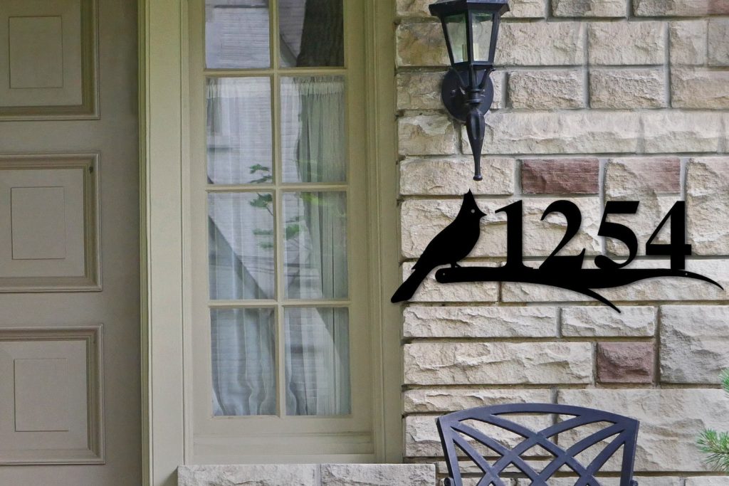 Cardinal Metal Address Sign with Bird Design