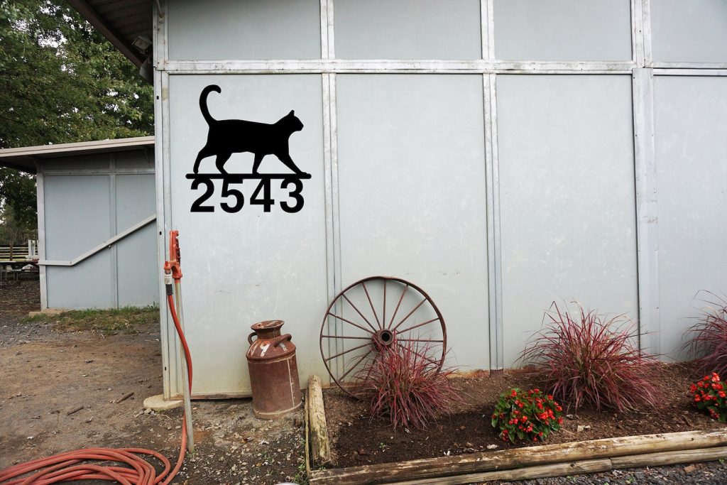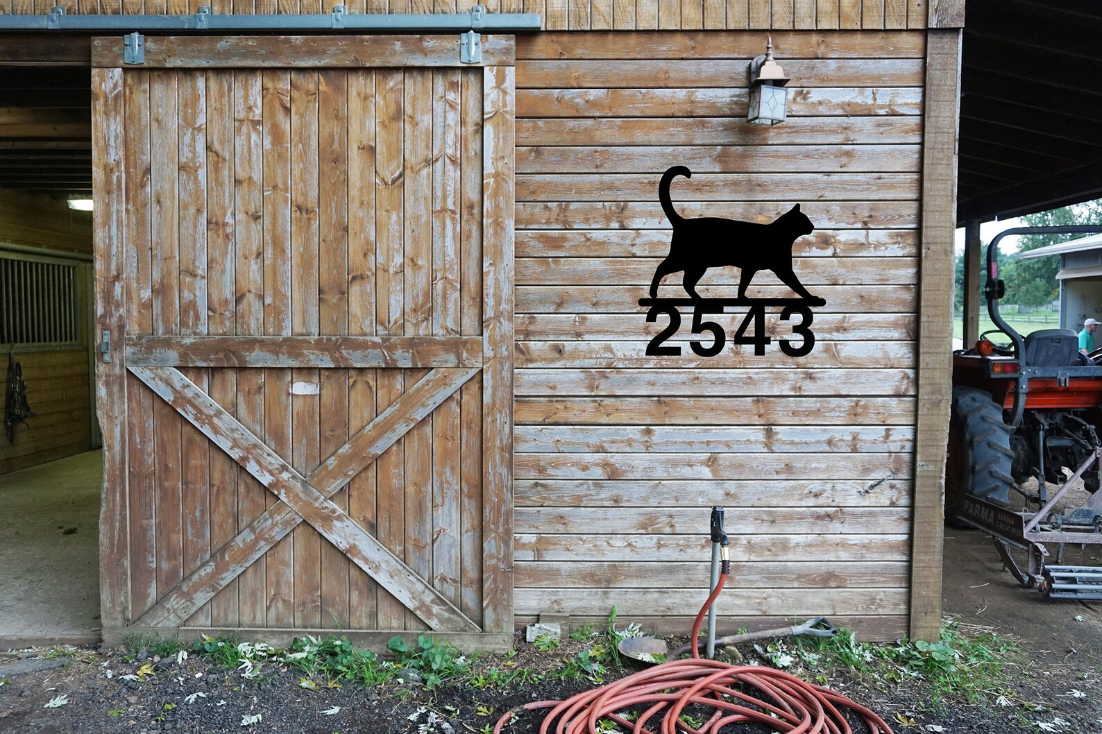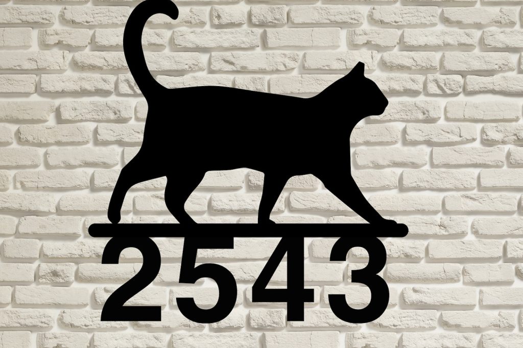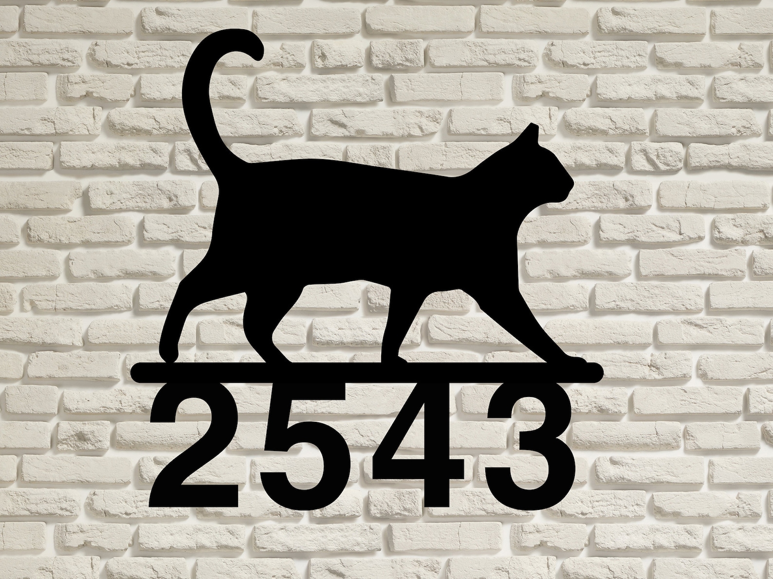 If you love cats and all things feline, you9;ll love this unique walking cat house number sign customized with your home9;s numbers. This custom metal address plaque will look gorgeous on the exterior of your home, your garage, porch, or front door to help others find your home address.