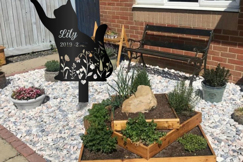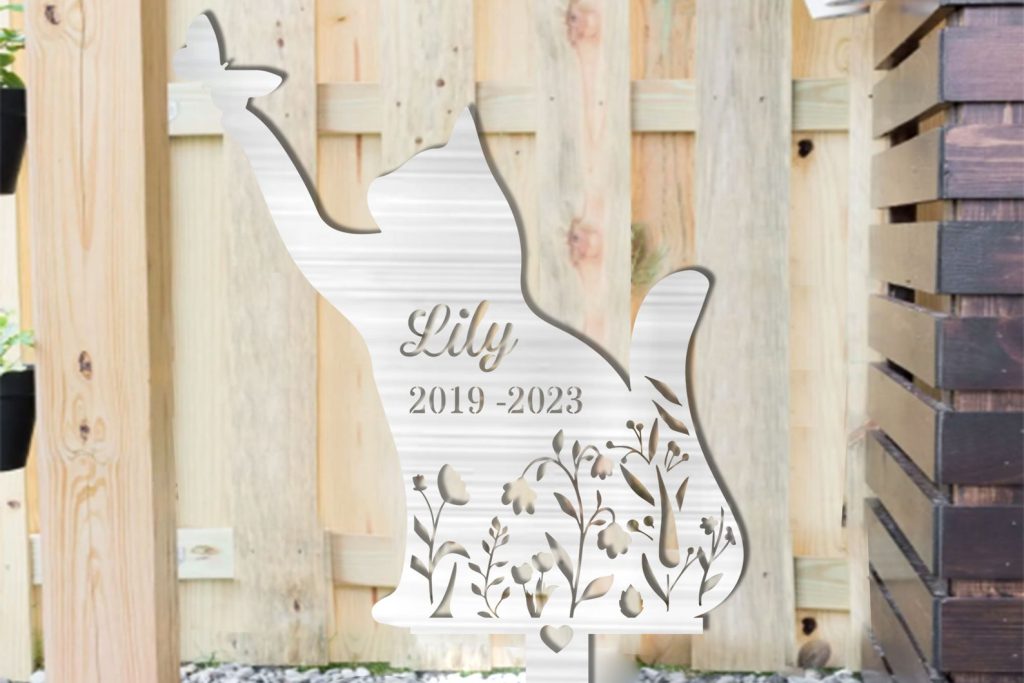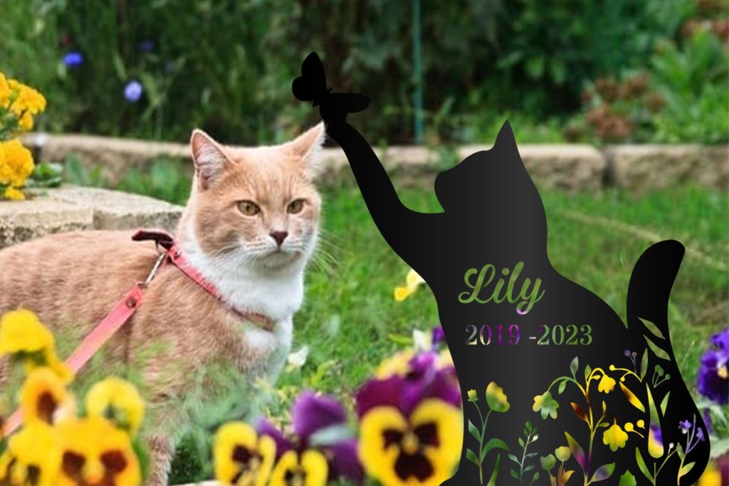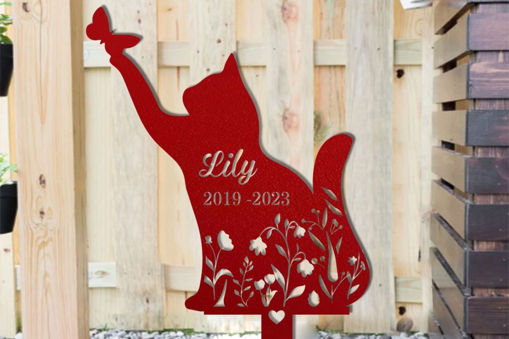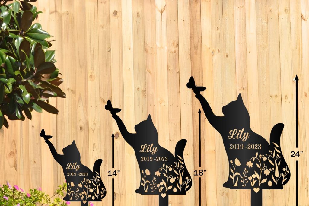 Personalized Cat Memorial Stake,Metal Stake,Cat Loss,Sympathy Sign,Pet Grave Markers,Remembrance Stake,Metal Cat with Butterfly,Flower Cat