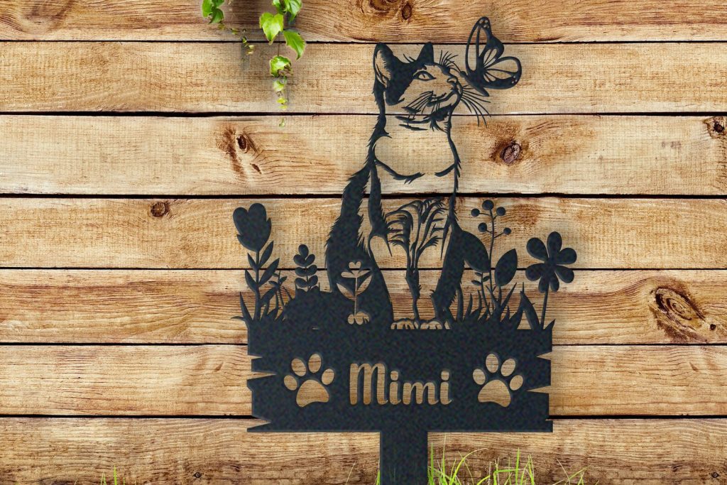 Do you have a beloved pet that you want to commemorate forever? Our custom cat memorial garden stake offers the perfect way to do just that. This beautiful, rustic, and hand-made garden stake will be a unique feature in your outdoor space while also honoring your lost pet.