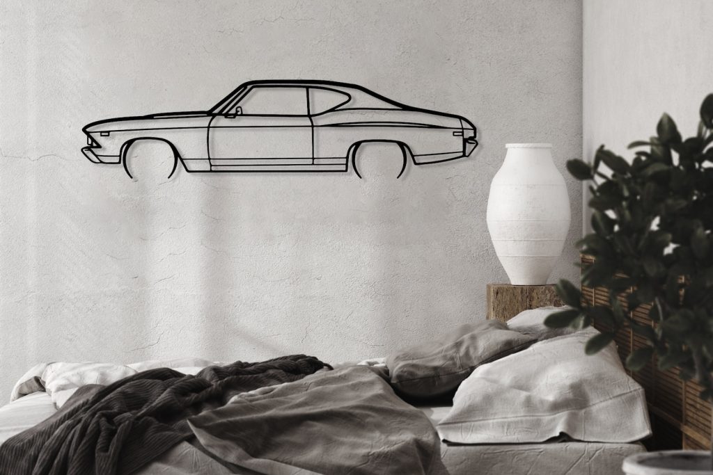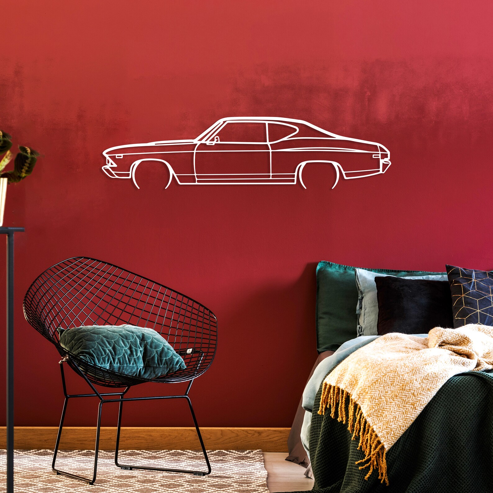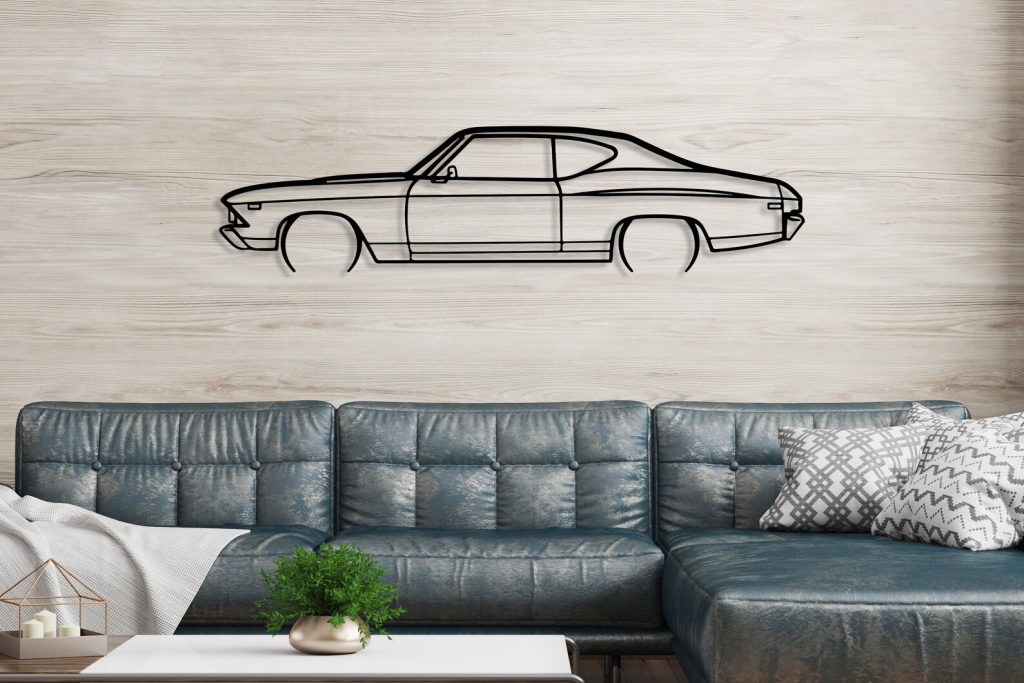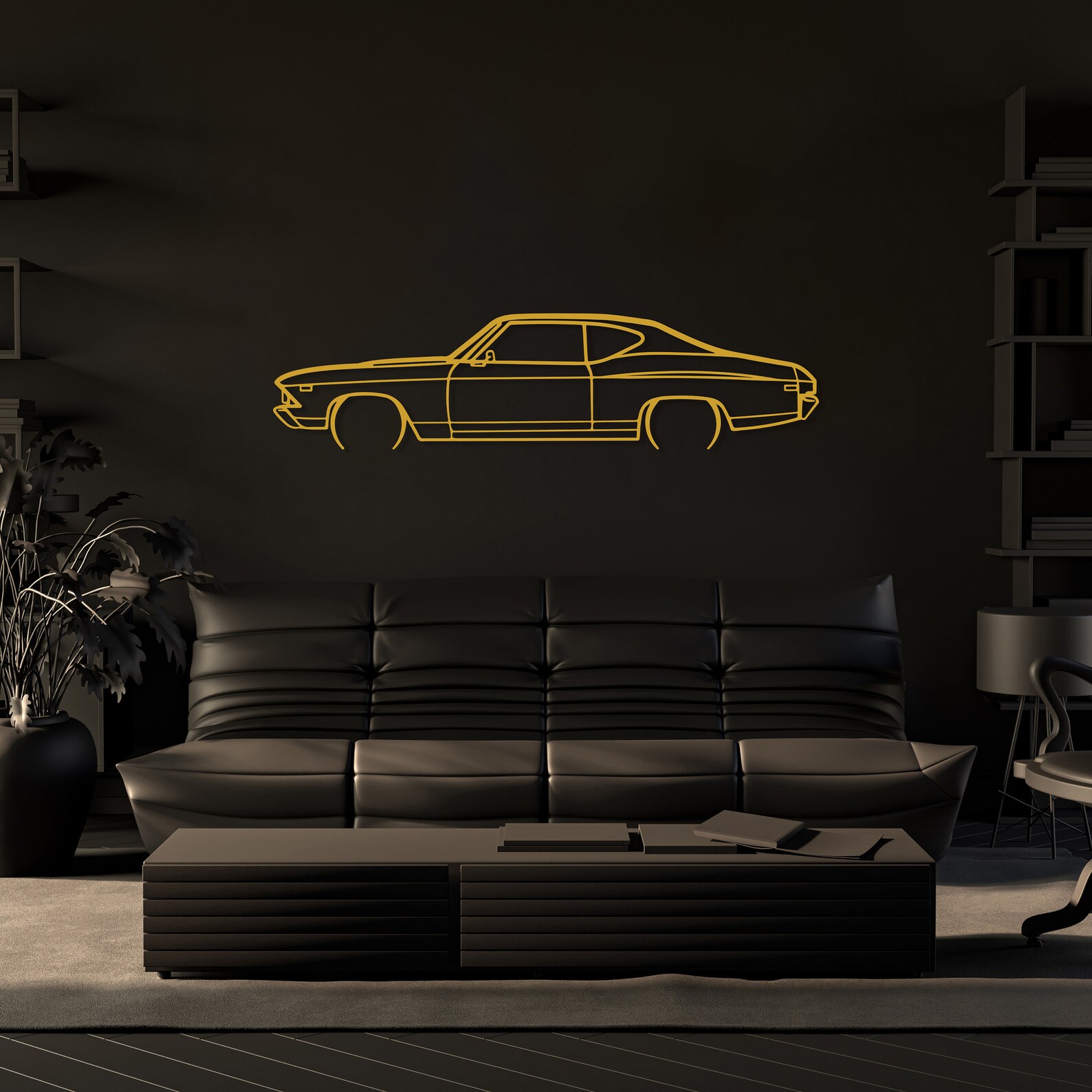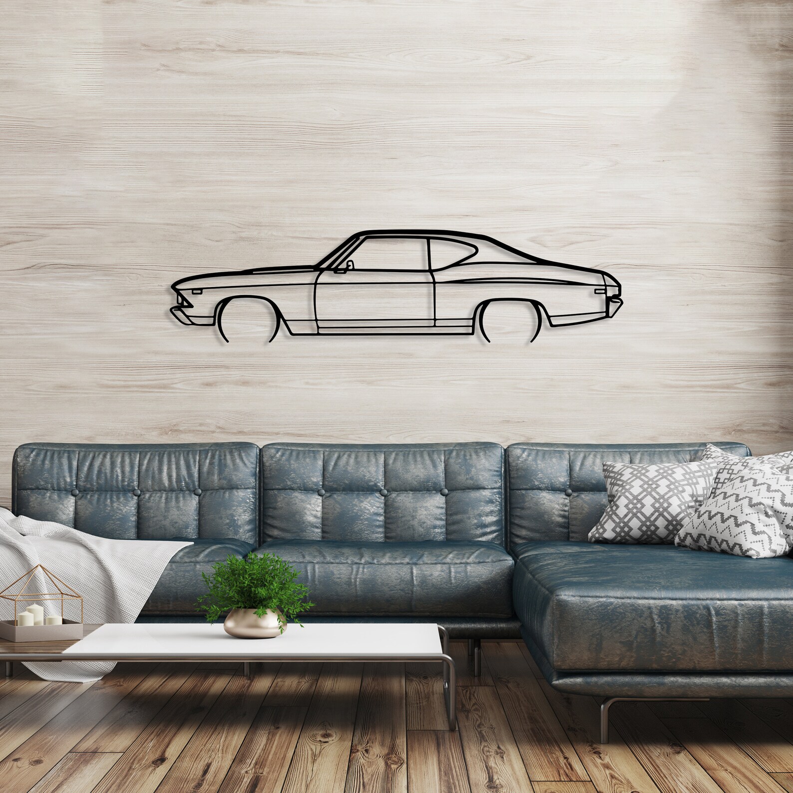 Chevelle SS Metal Car Silhouette, Classic Automotive Decor, Chevelle SS 1969 Garage Sign, Father Gift, Metal Car Line Art, Large Car Art