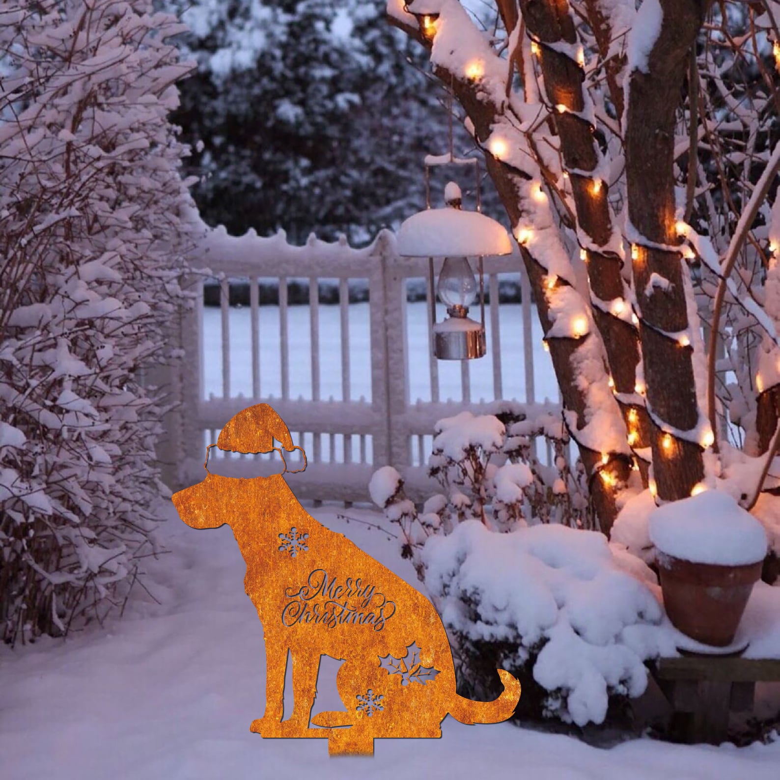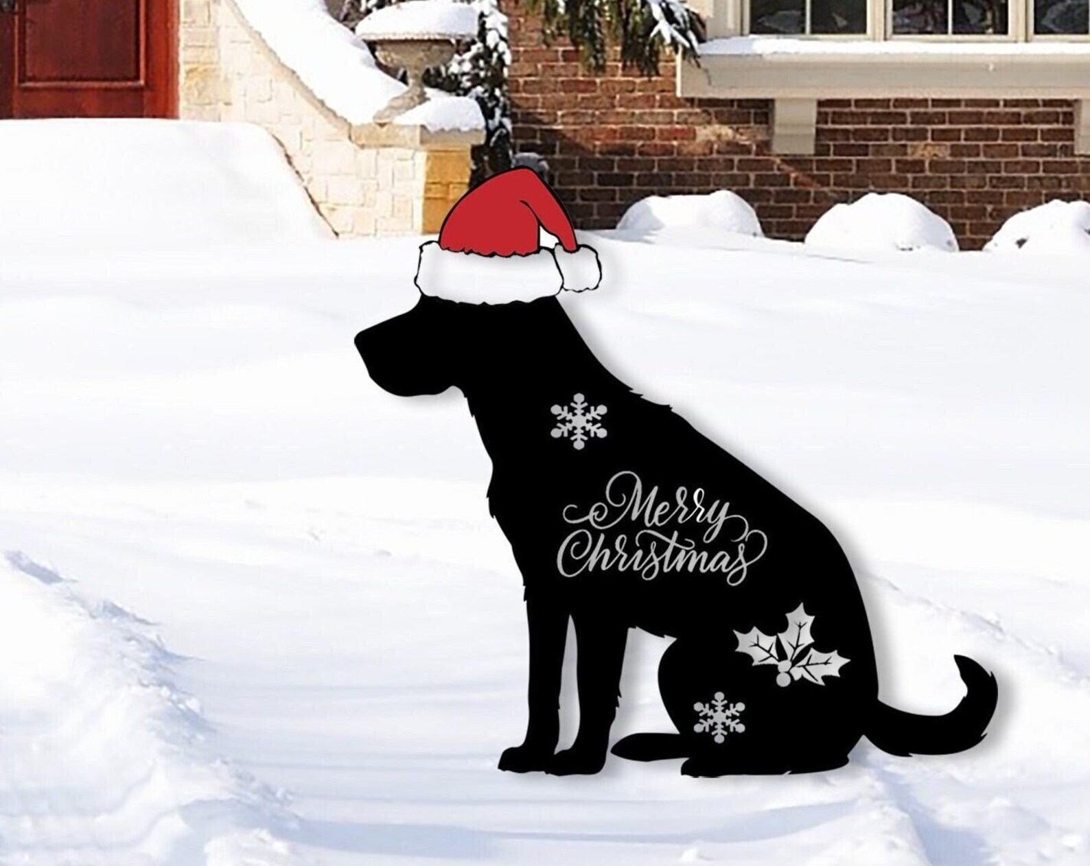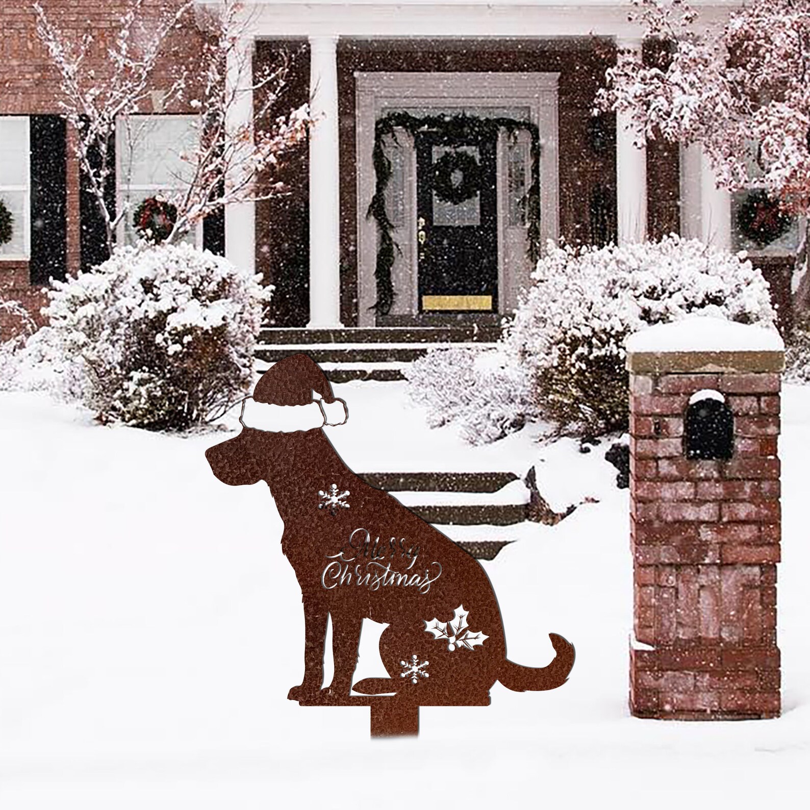 Christmas Dog Sign, Christmas Decor, Labrador Metal Sign, Rusty Metal Stake, Vintage Sign, Holiday Gift, Yard Decoration, Christmas Yard Art, Meaningful Christmas decorations, Christmas gifts, family gifts, Labrador pet lovers, metal signs for animals.