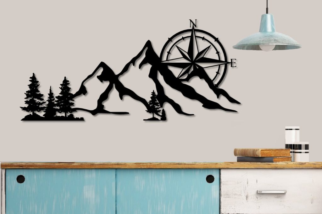 Be the first to review “Compass Rose Sign, Mountain Scene, Farmhouse Decor”