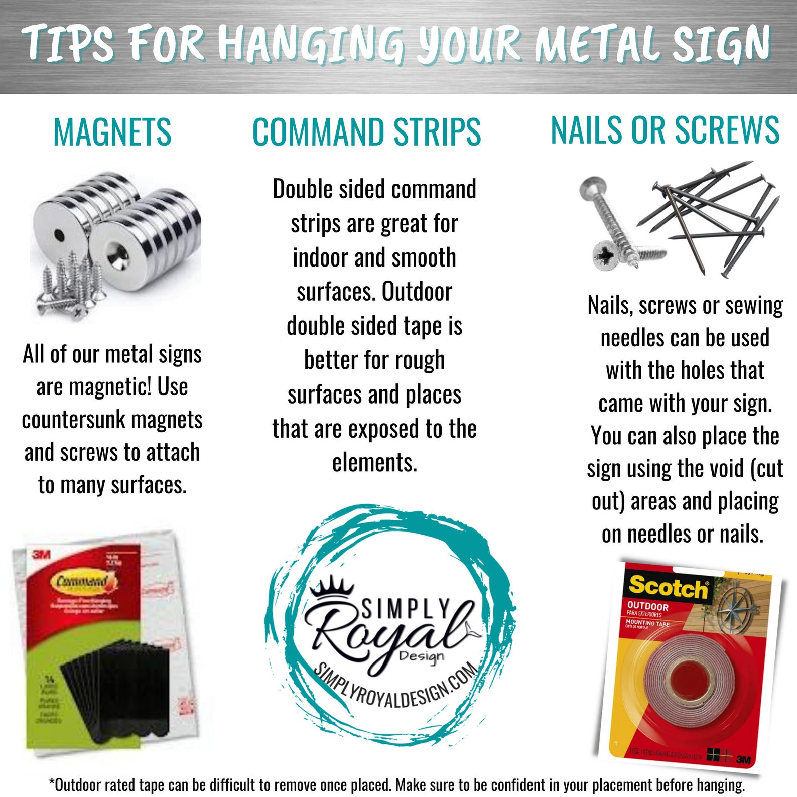 Most of our pieces are hung with small needles or nails using the existing void spaces as anchor points. This way the art hangs flush with the wall and doesn9;t take away from the design. Our customers have also had a lot of success using double sided command tape. Our metal designs are also magnetic! Small holes can be added for no extra charge. Please specify in the notes at checkout if you want this option. Hanging hardware is not incl.