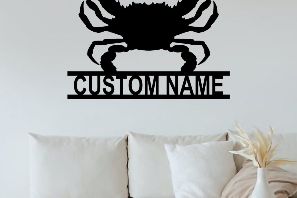 Crab Metal Sign, Personalized Beach Decor