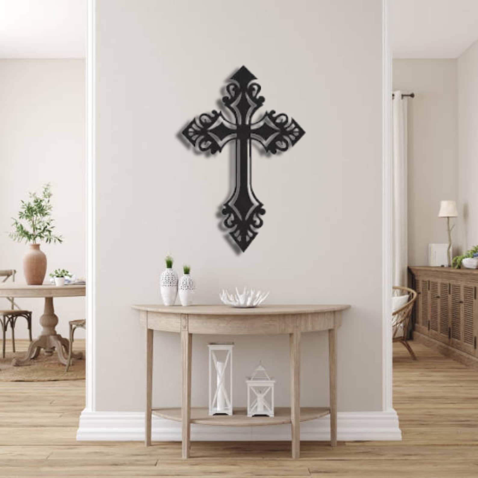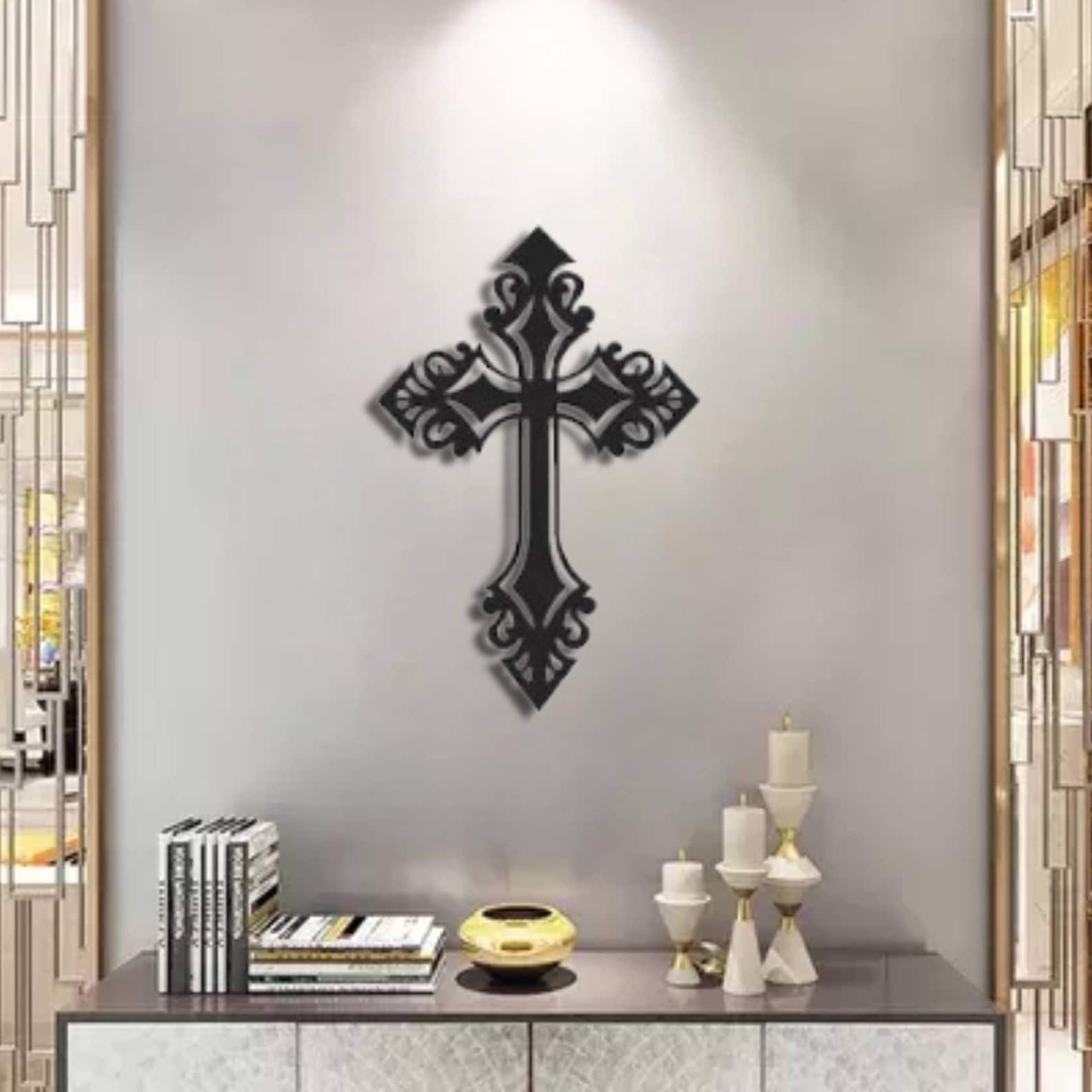Be the first to review “Cross Sign – Black Metal Wall Art, Christian Cross Decor”