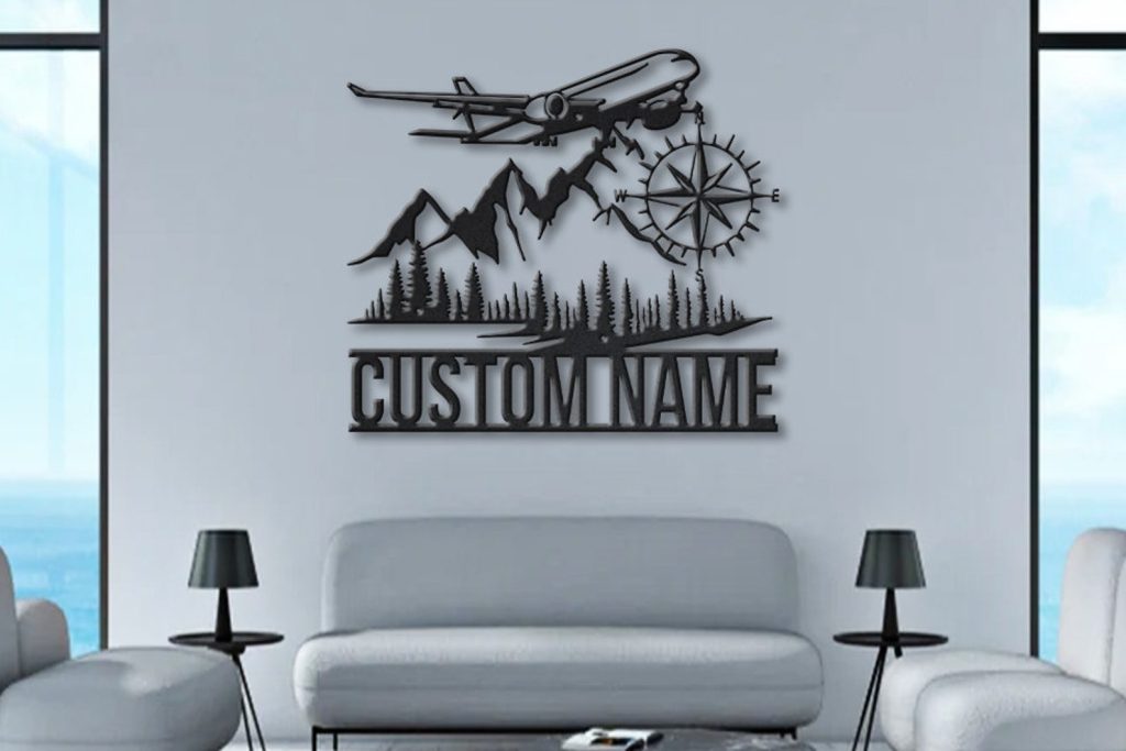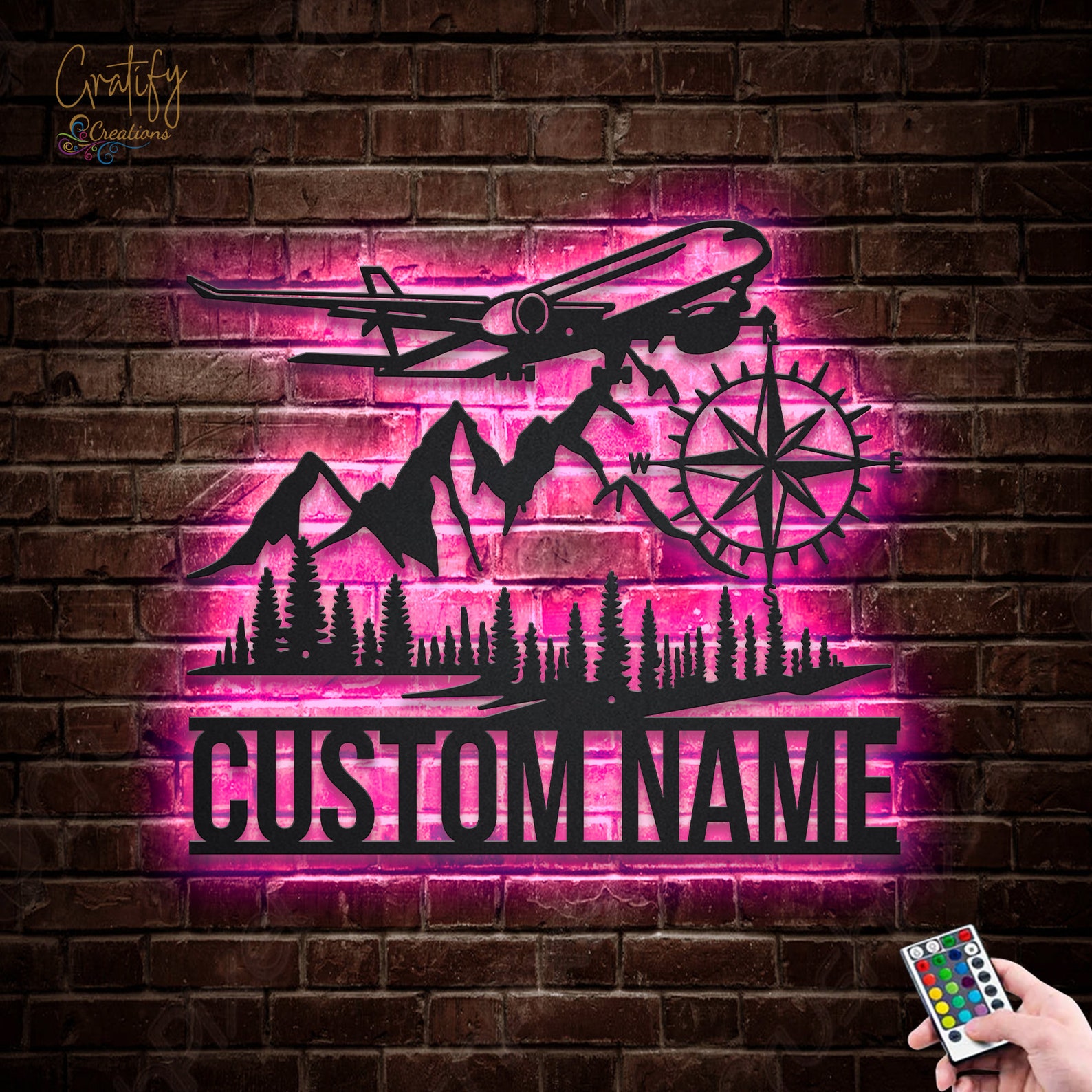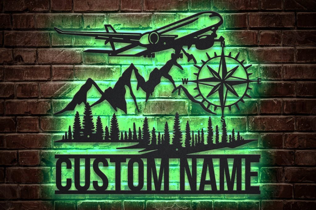 Custom Airplane Forest Metal Sign with LED V3 – Wall Decor